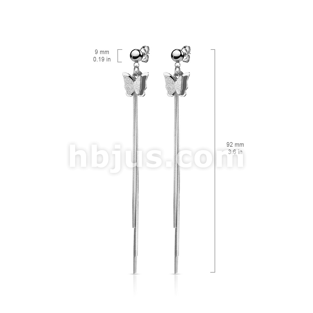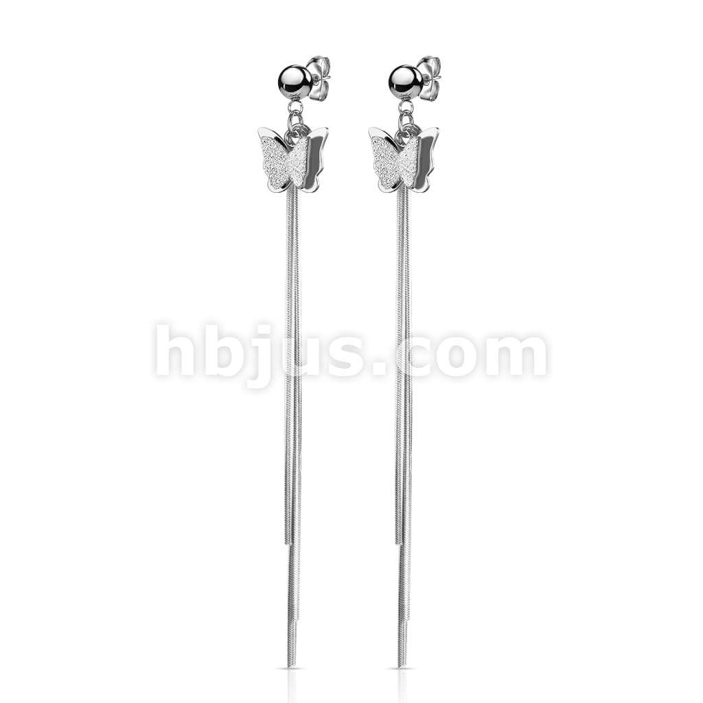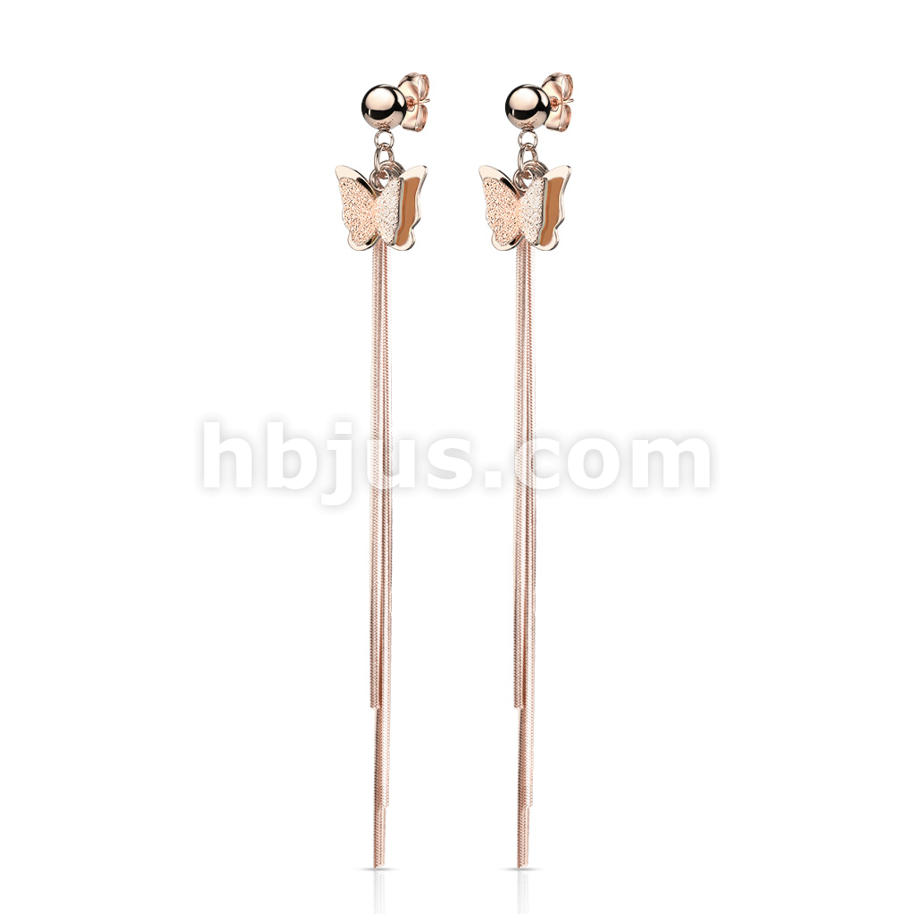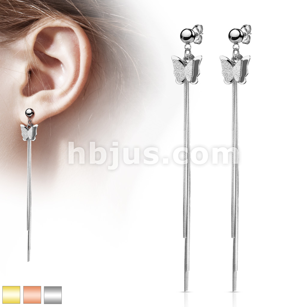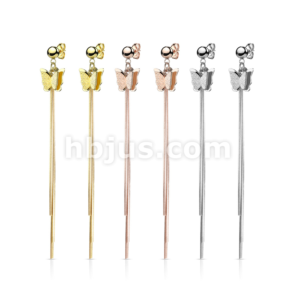 Pair of Two Tone Butterfly and Chains Dangle on Ball 316L Stainless Steel Stud Earrings
