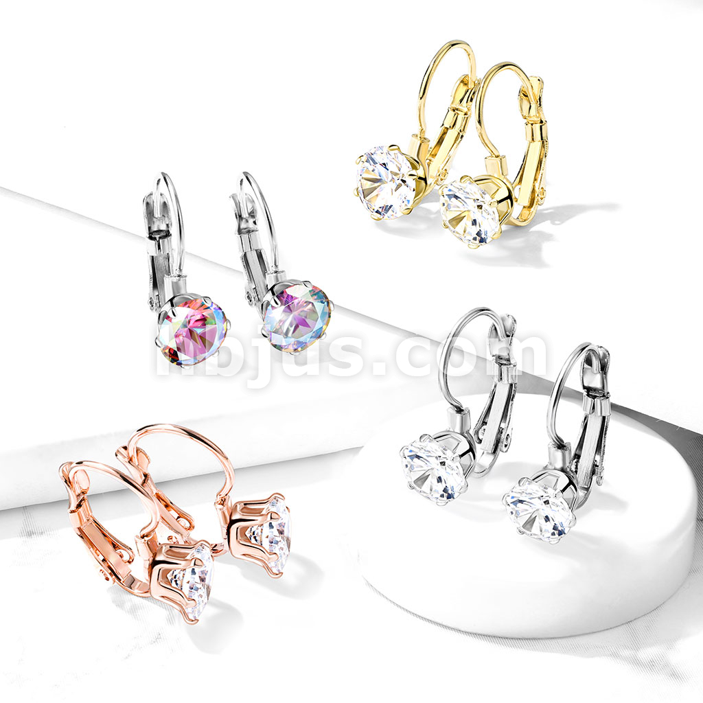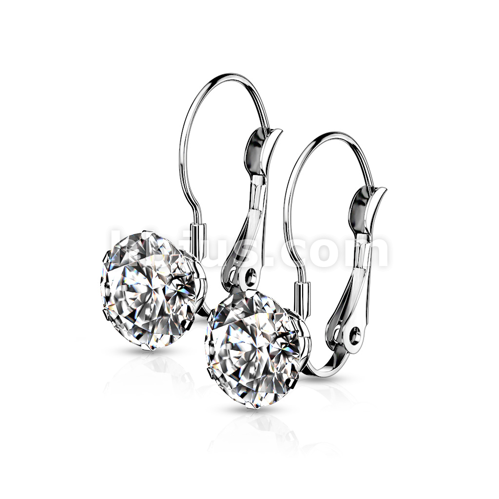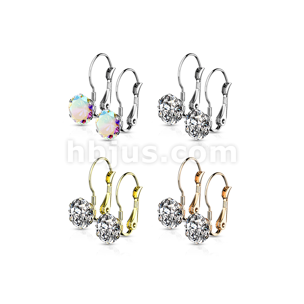 Pair of Prong Set Round CZ Lever Back Stainless Steel Earrings