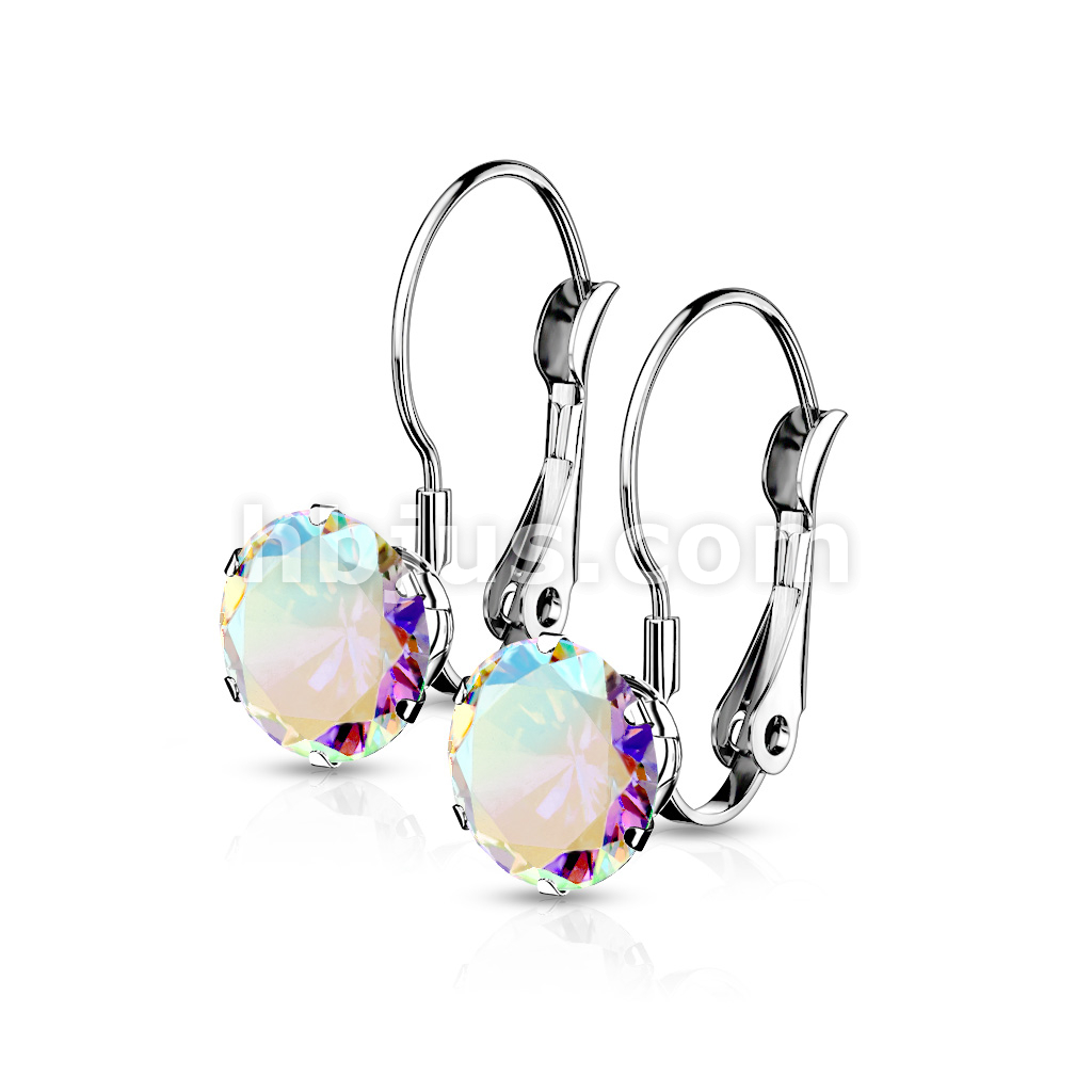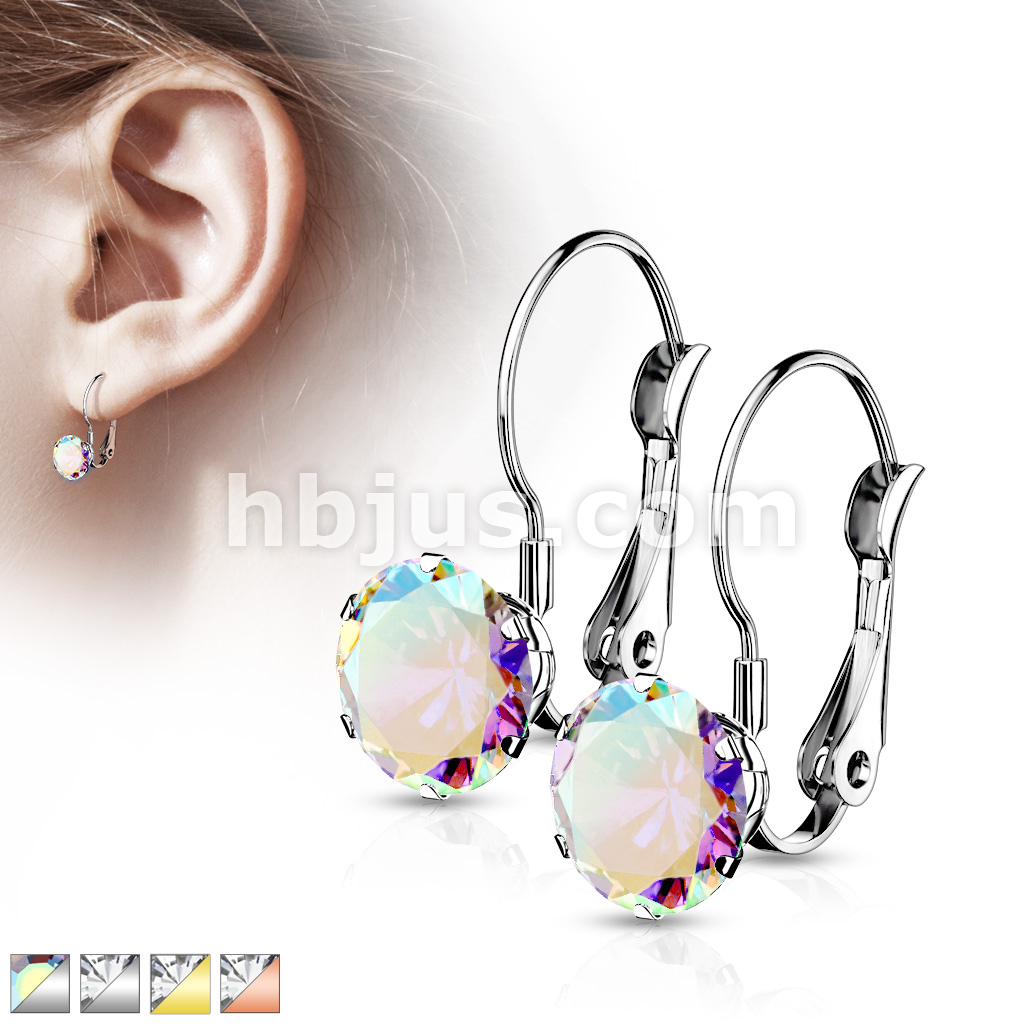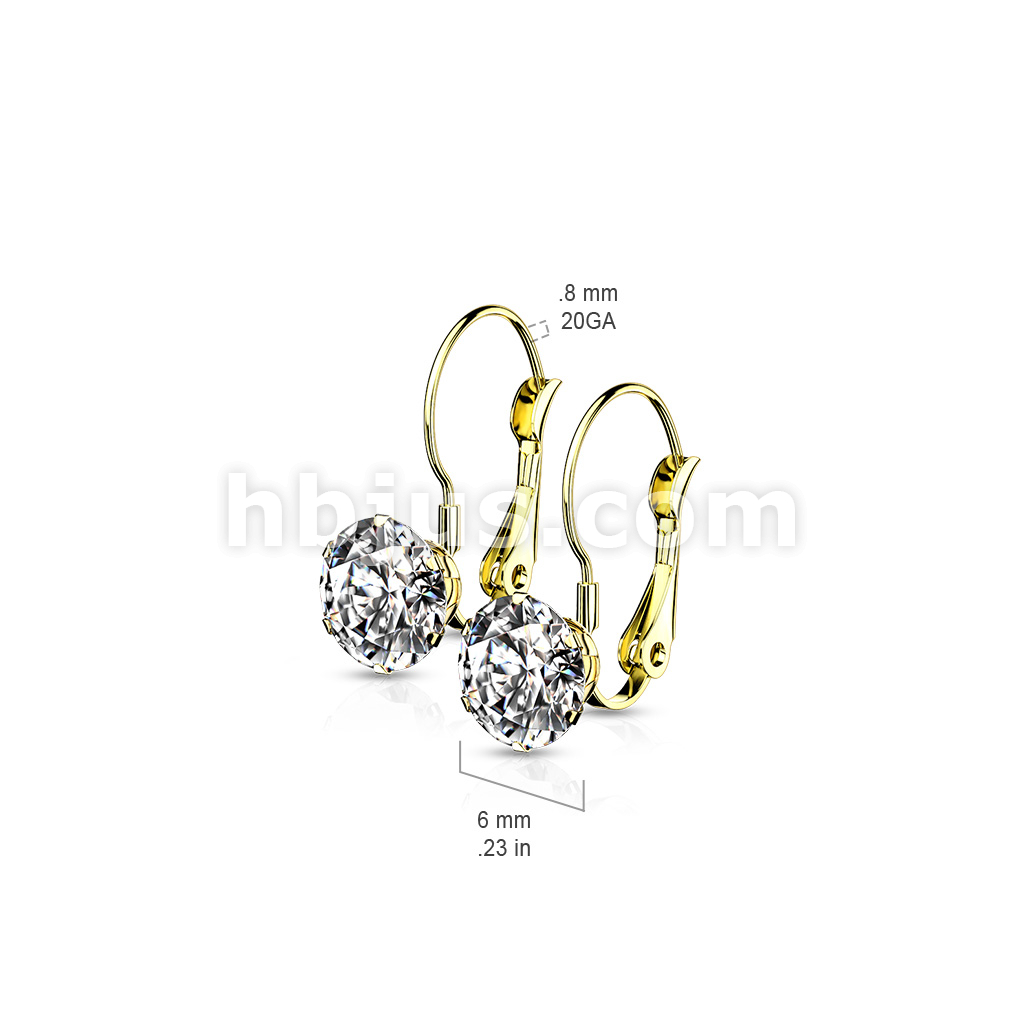 Pair of Prong Set Round CZ Lever Back Stainless Steel Earrings