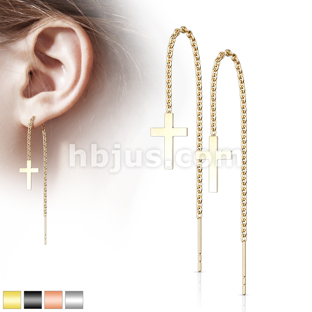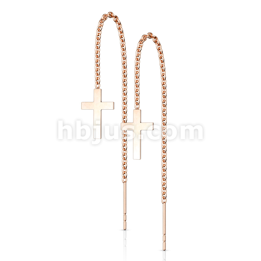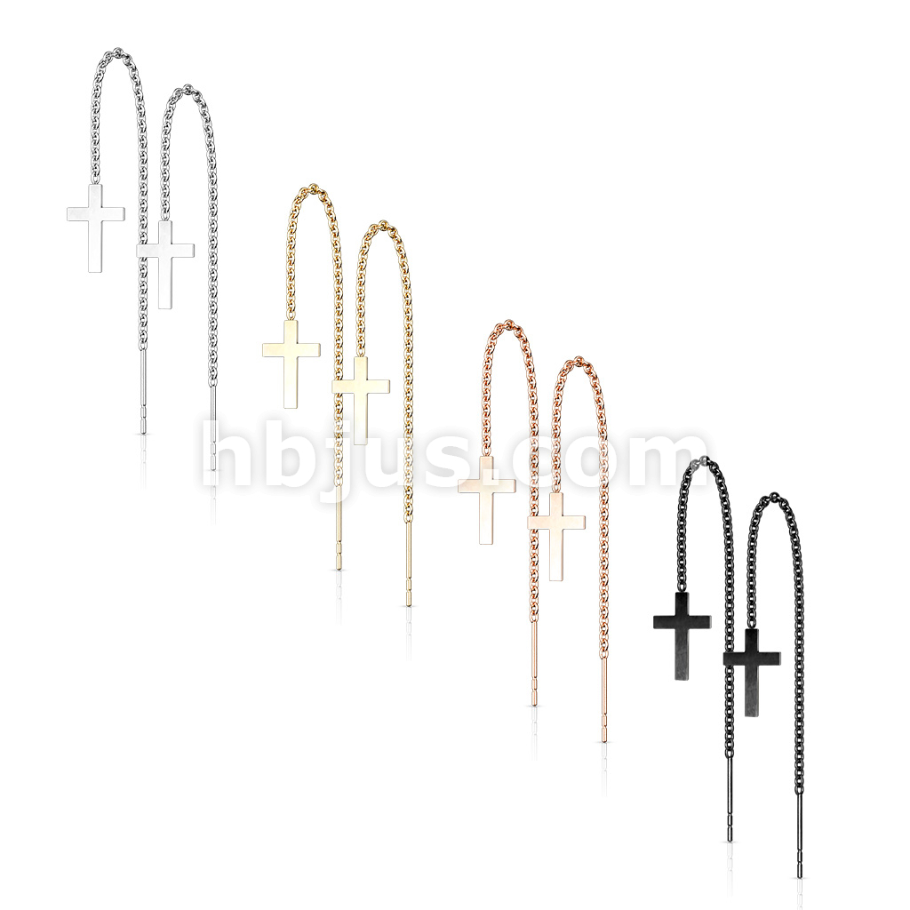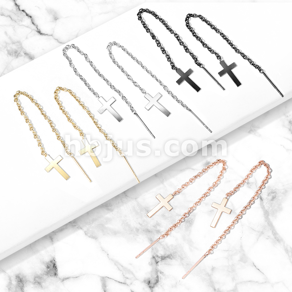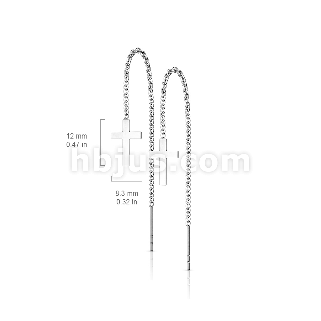 Pair of 316L Stainless Steel Earrings Chain Linked Cross and Post.