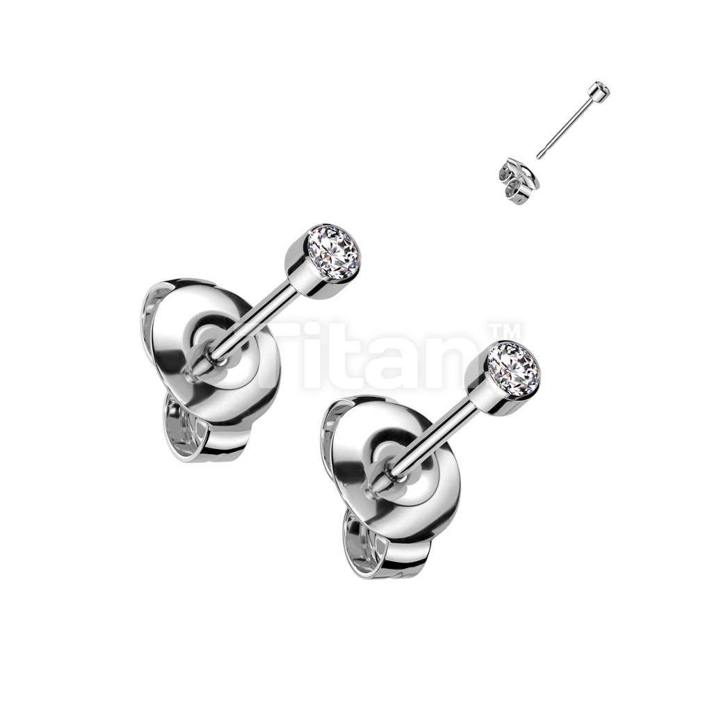 Implant Grade Titanium Pair of Bezel Set CZ Earring Studs