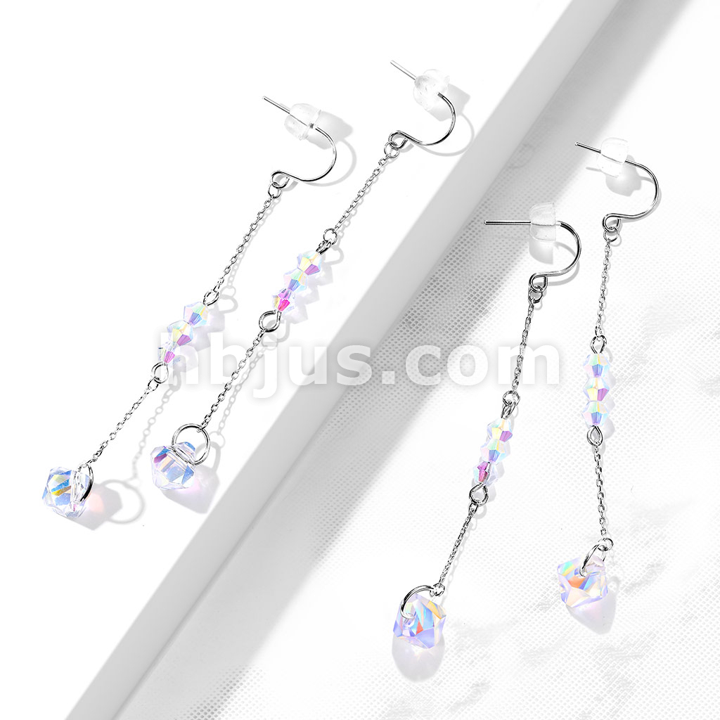 Pair of 316L Surgical Steel Hook Earrings with Chain and Iridescent Beads