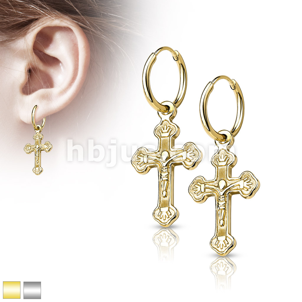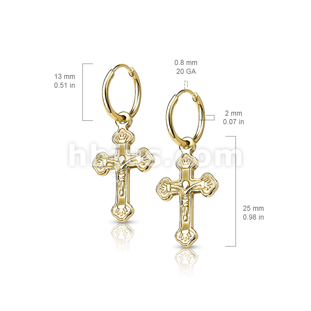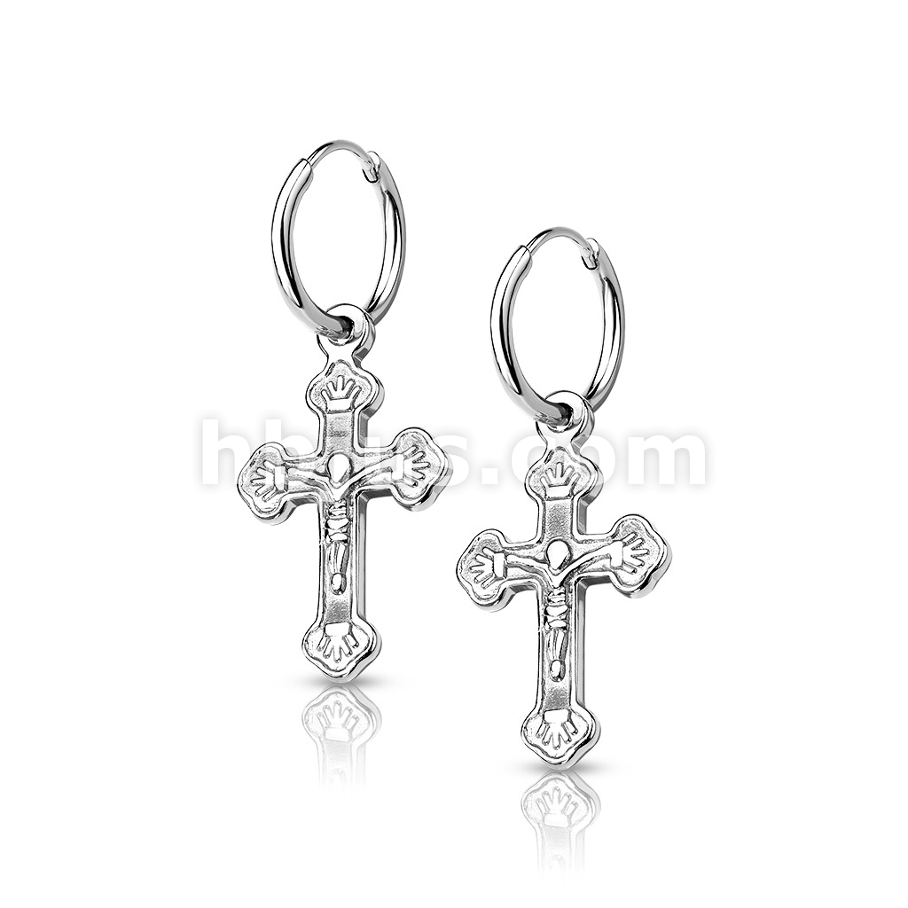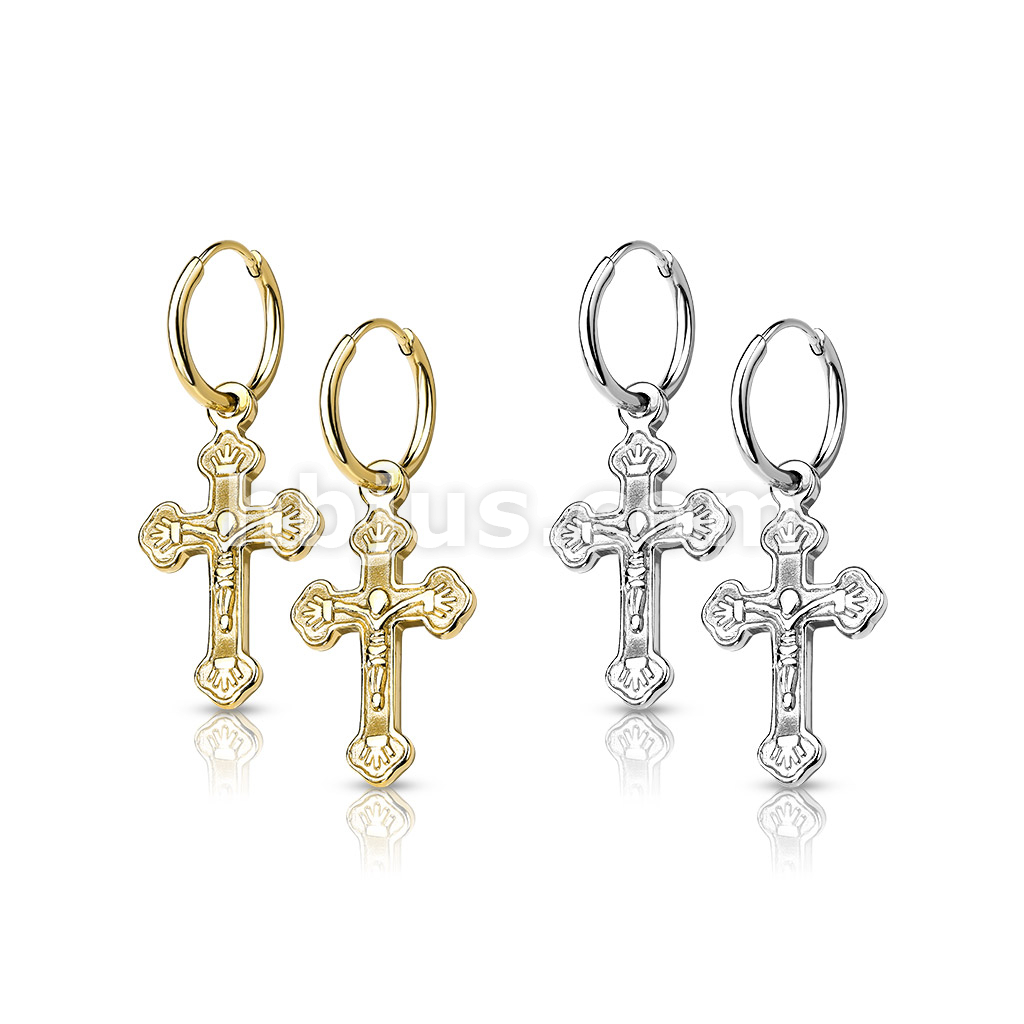 Pair of 316L Surgical Steel Hoop Earrings with Cross Dangle