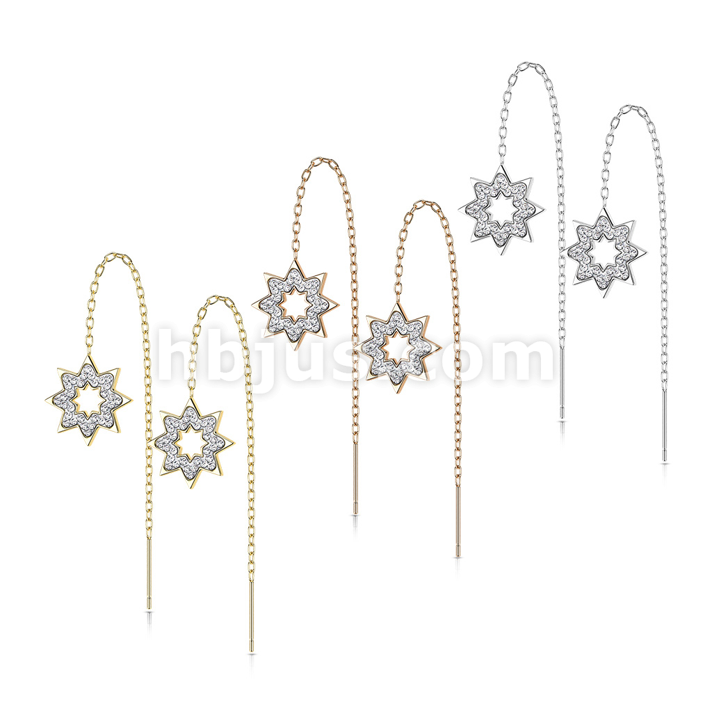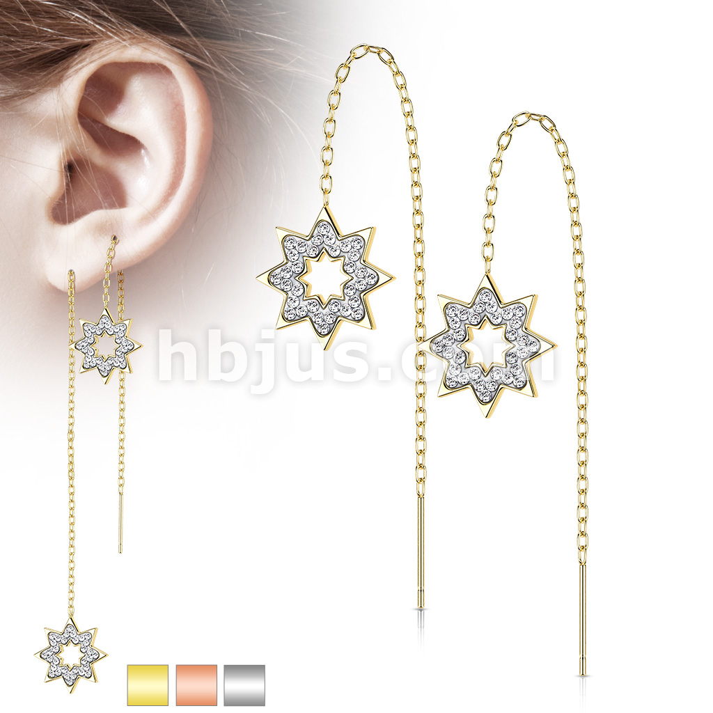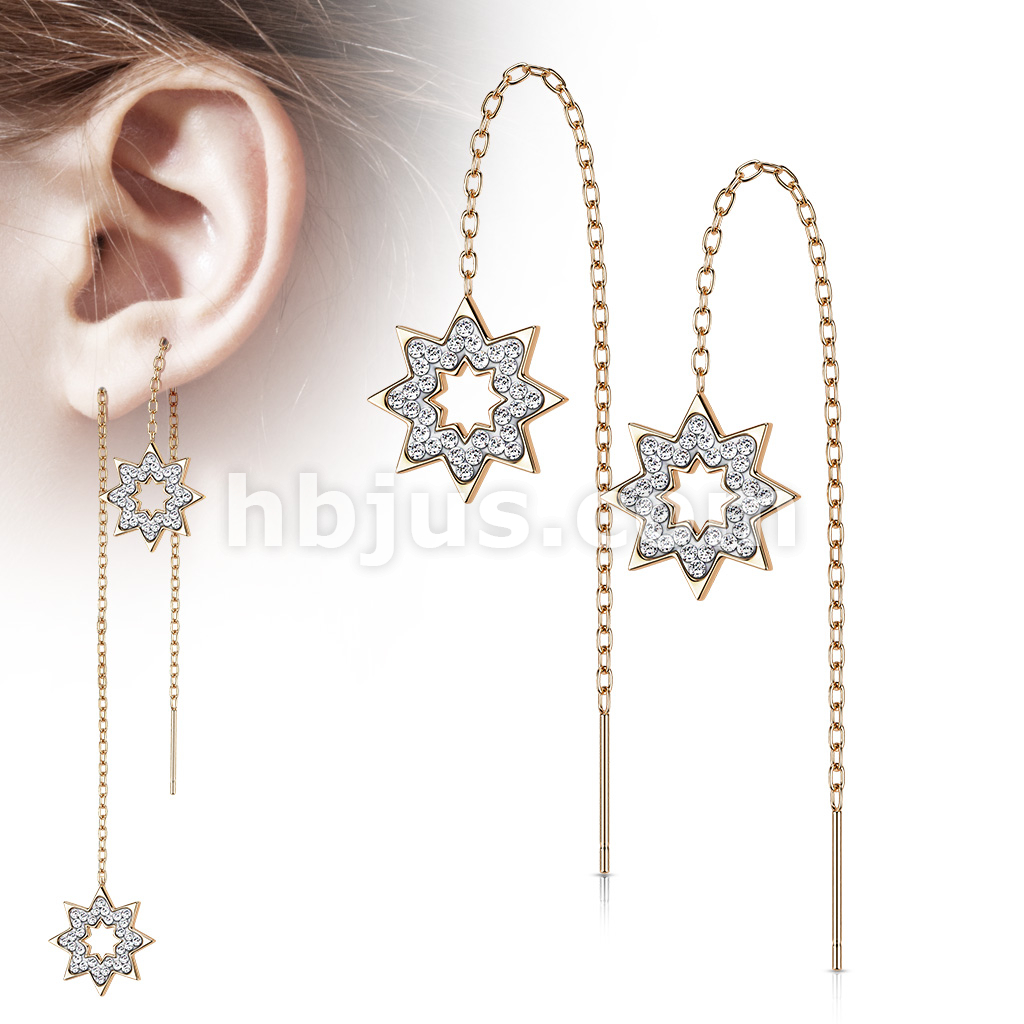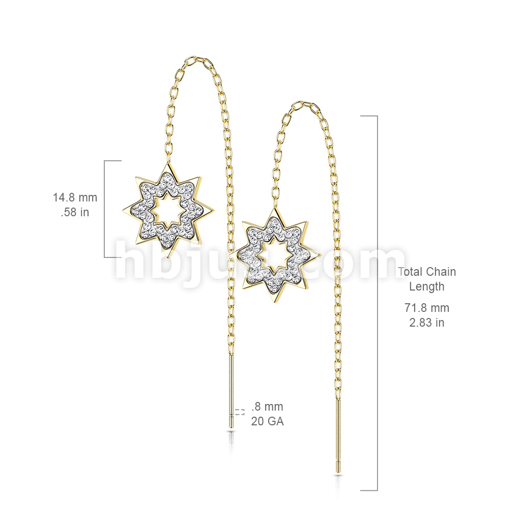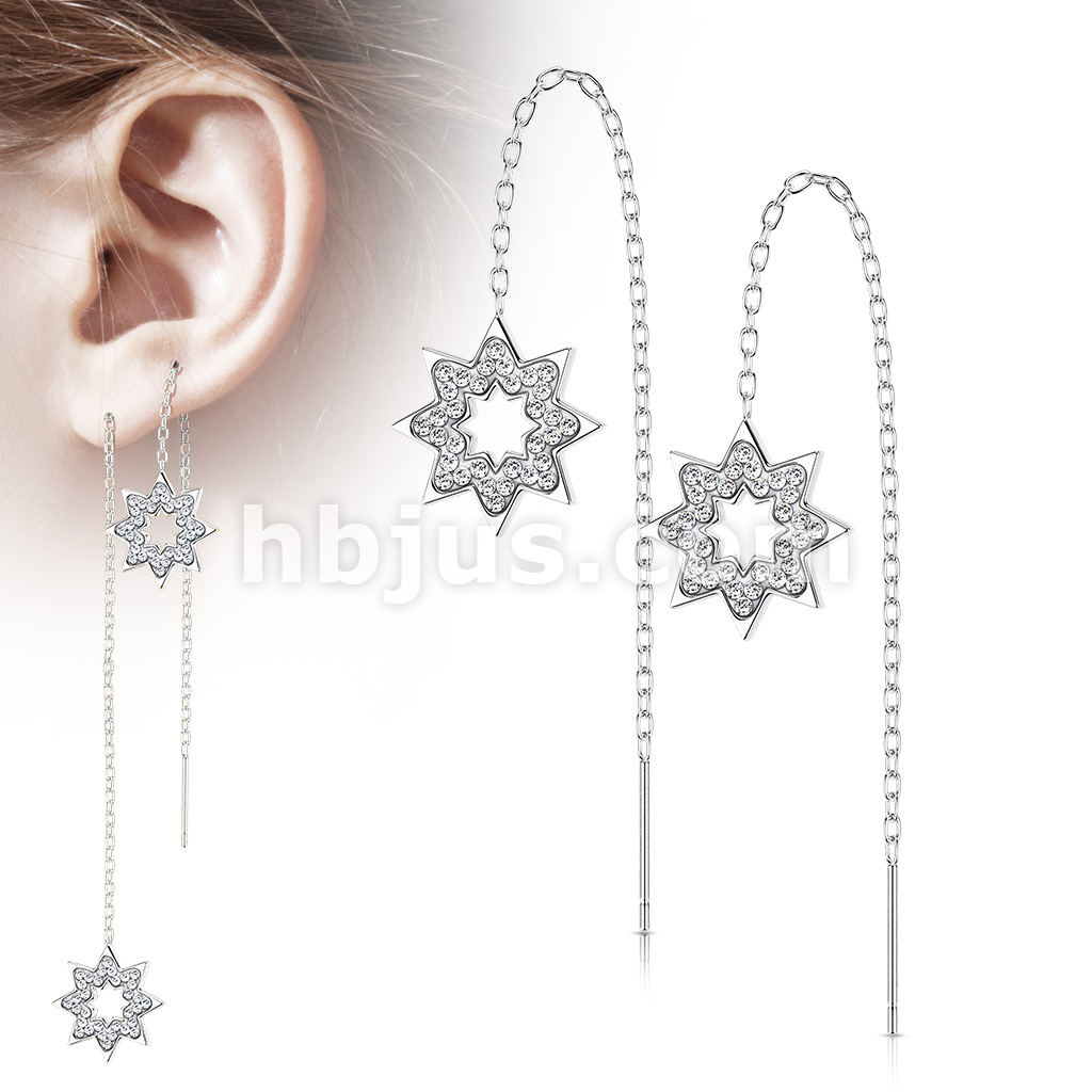 Pair of 316L Surgical Steel Free Falling Threader Earrings With Crystal Paved on a Snowflake