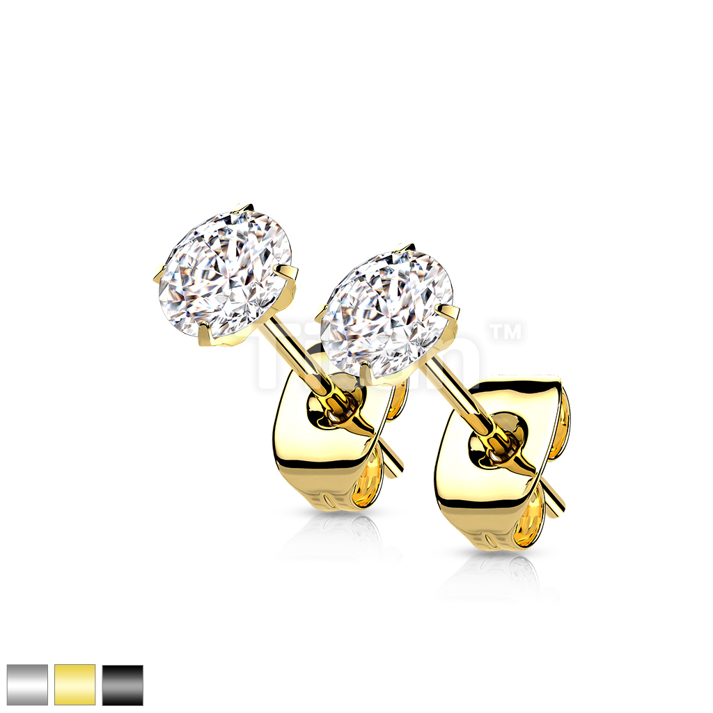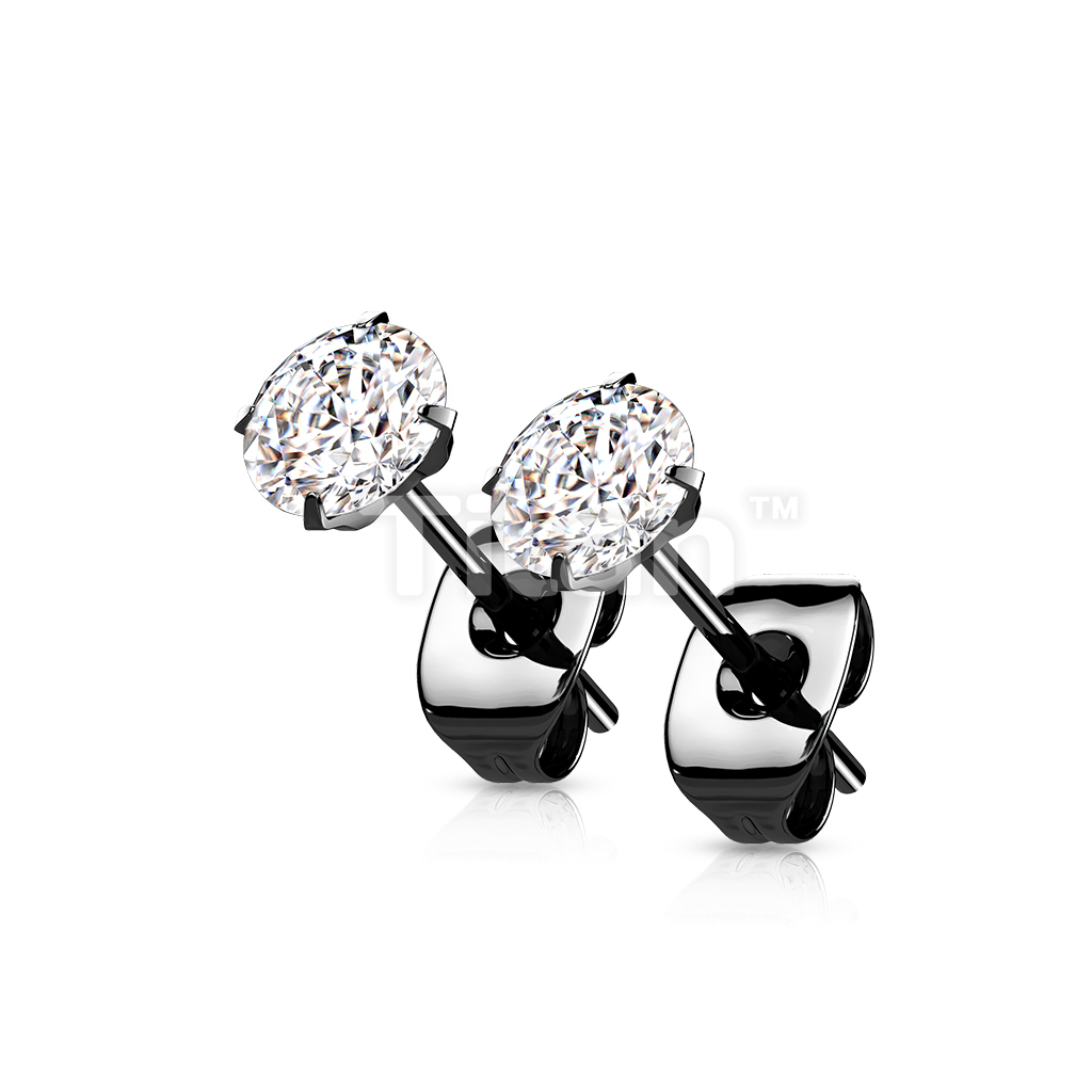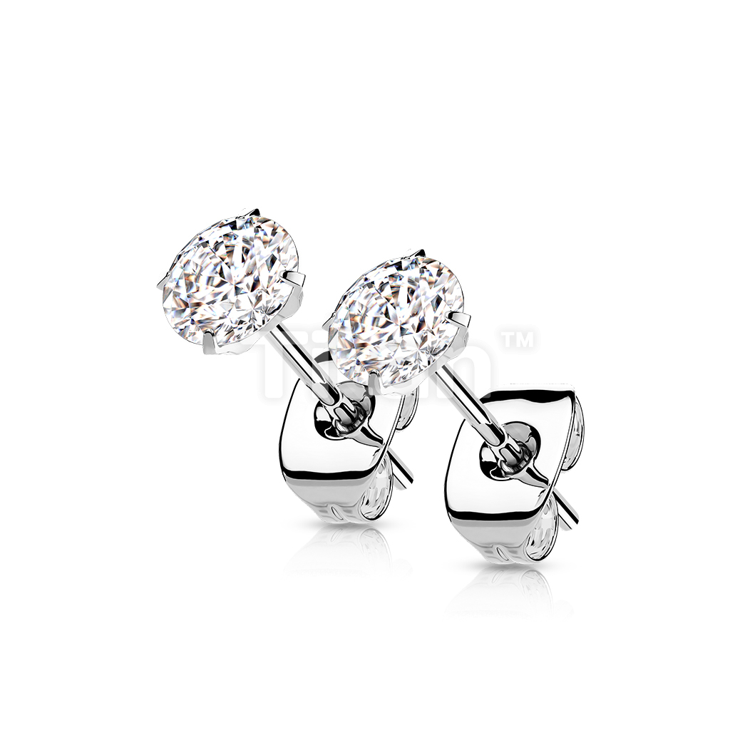 Pair of Implant Grade Titanium Prong Set Round CZ Earring Studs