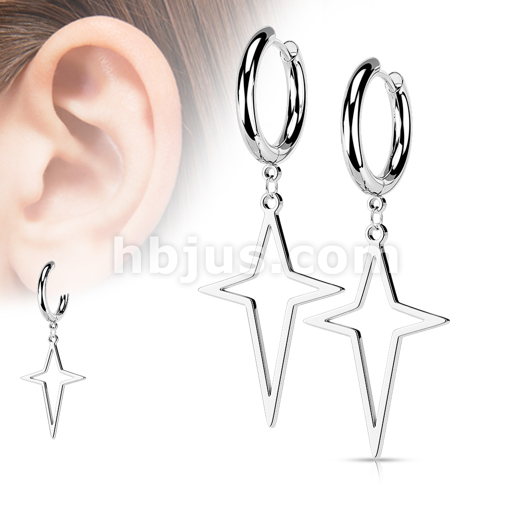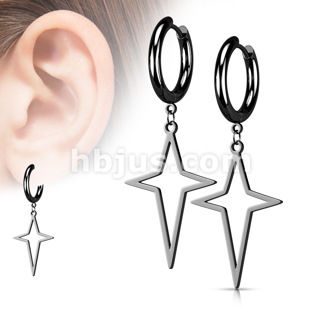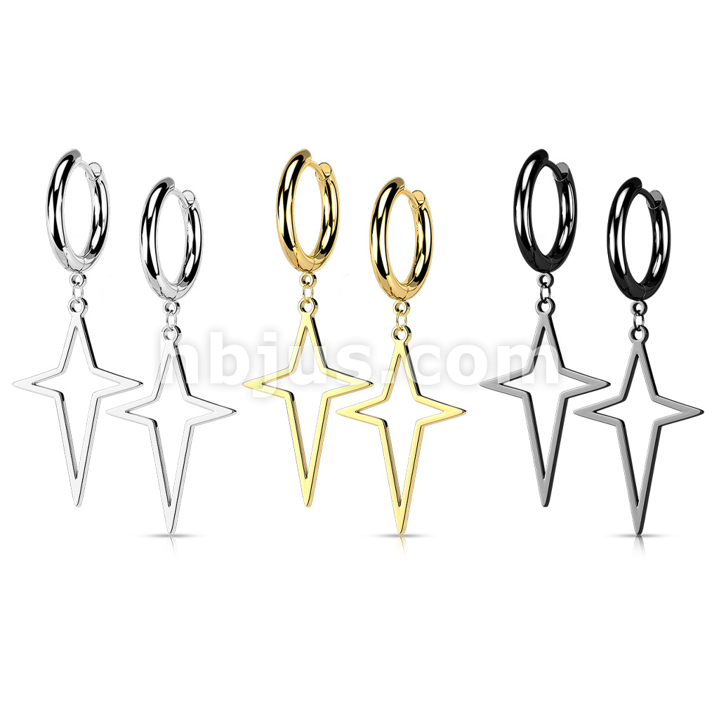 Pair of 316L Surgical Steel Hoop Earrings with Star Cross Dangle