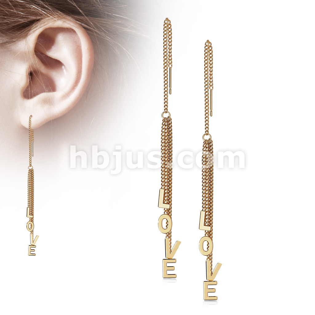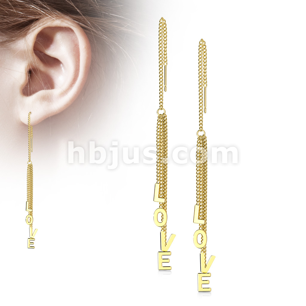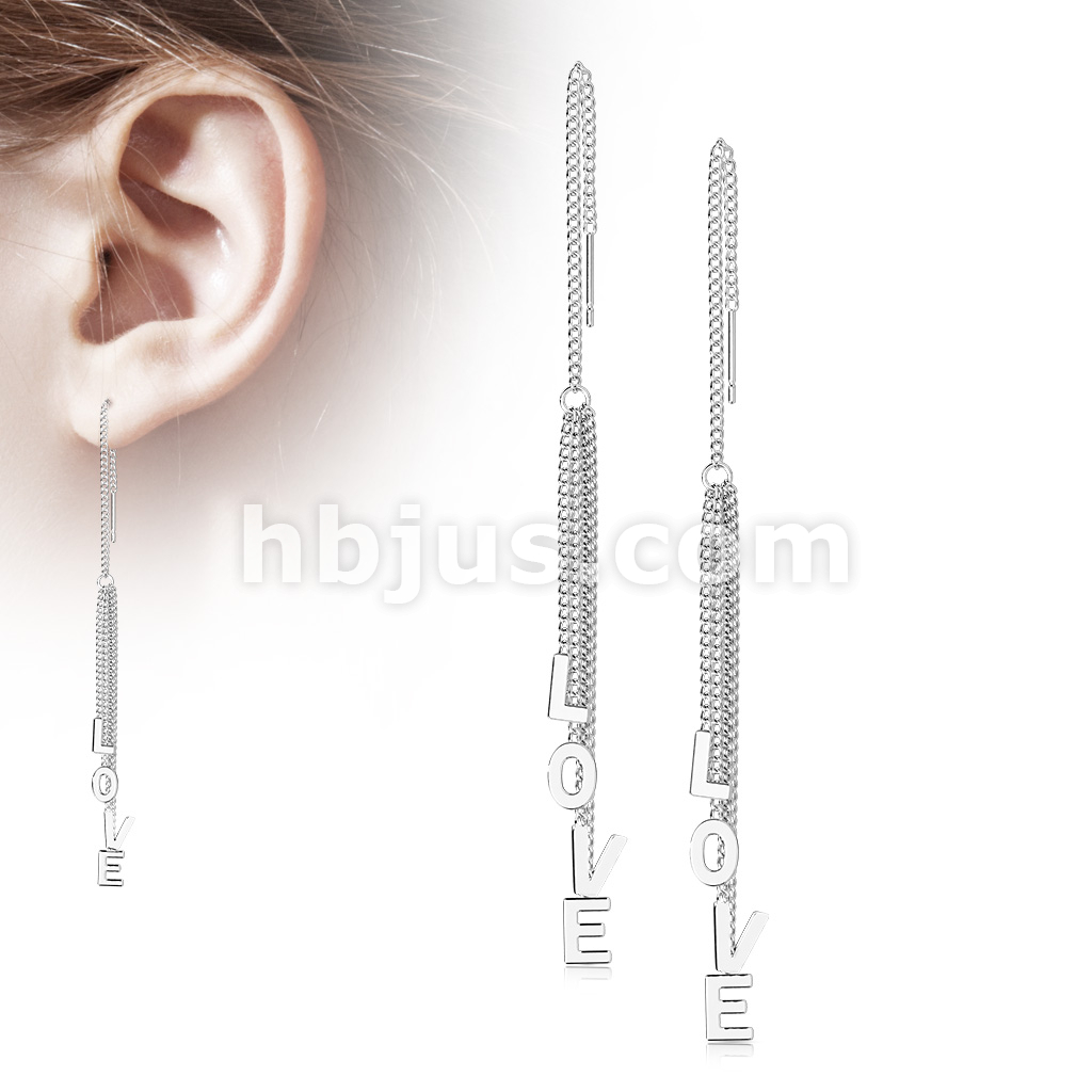 Pair of 316L Surgical Steel Free Falling Threader Earrings With "Love" Letter Dangle