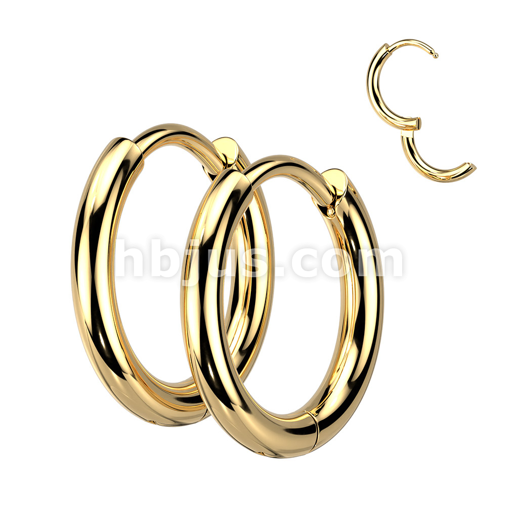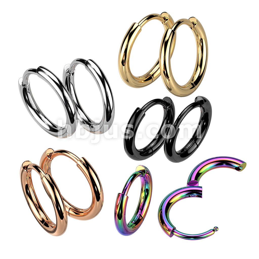 Pair of 316L Stainless Steel 2mm Thick Hinged Plain Round Hoop Earrings