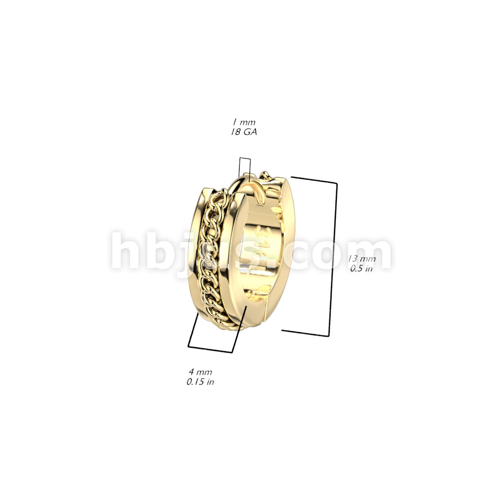 Pair of Stainless Steel Hinge Hoop Earrings With Chain Center