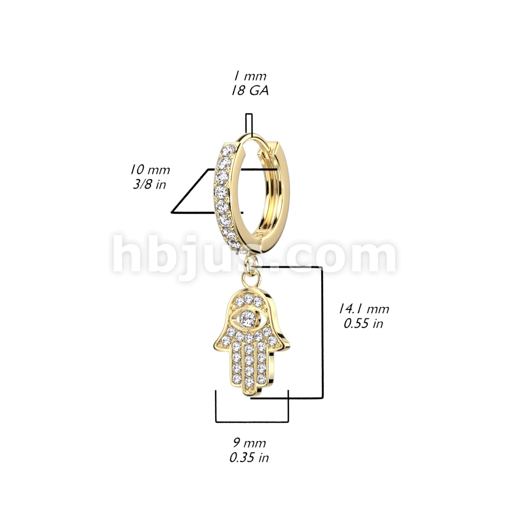 Pair of CZ Paved Front With CZ Paved Hamsa Dangle Hoop Earrings