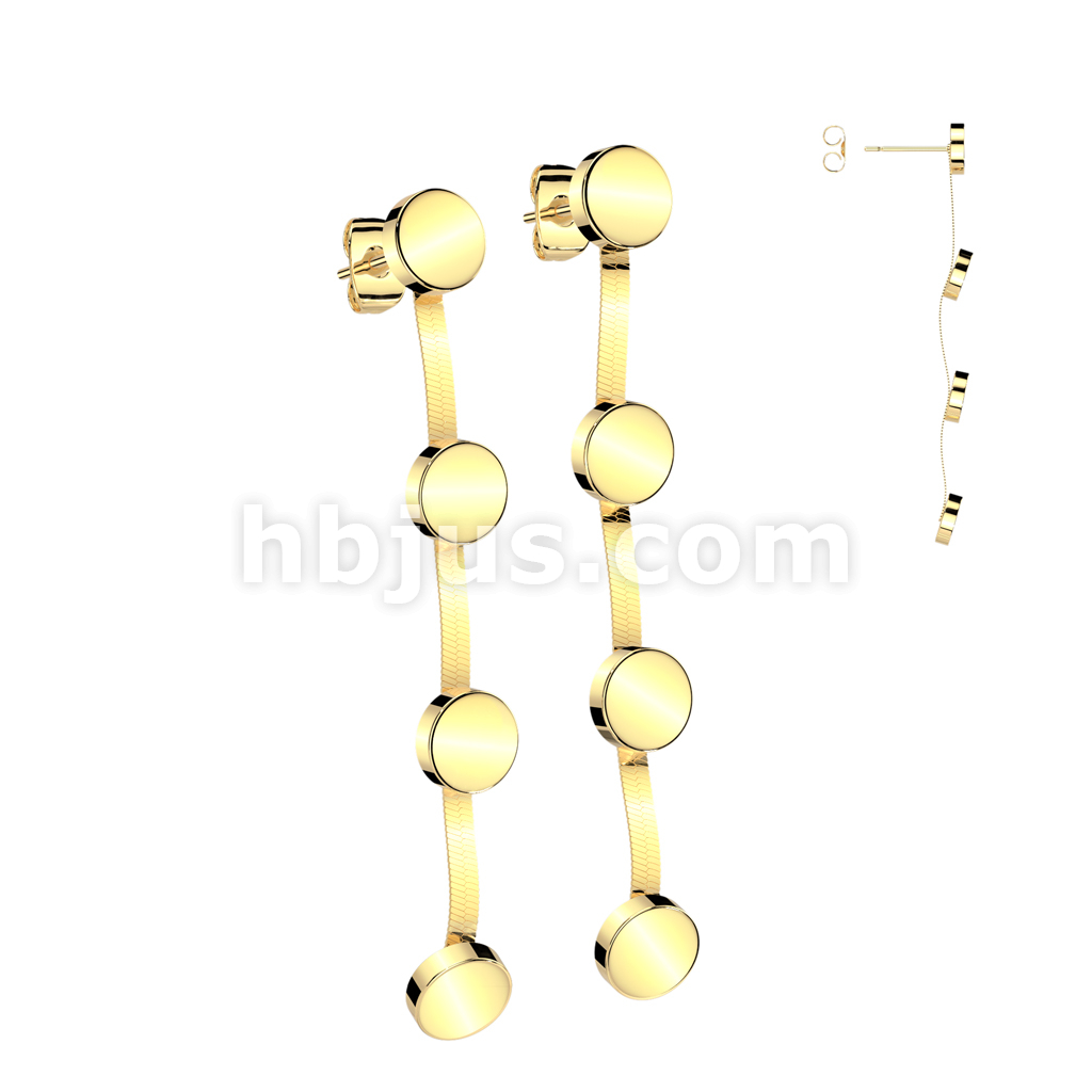 Pair of 316L Stainless Steel Stud Flat Round Earrings With 3 Matching Dangles