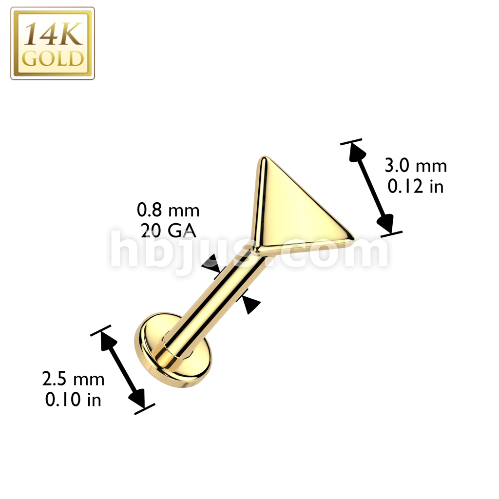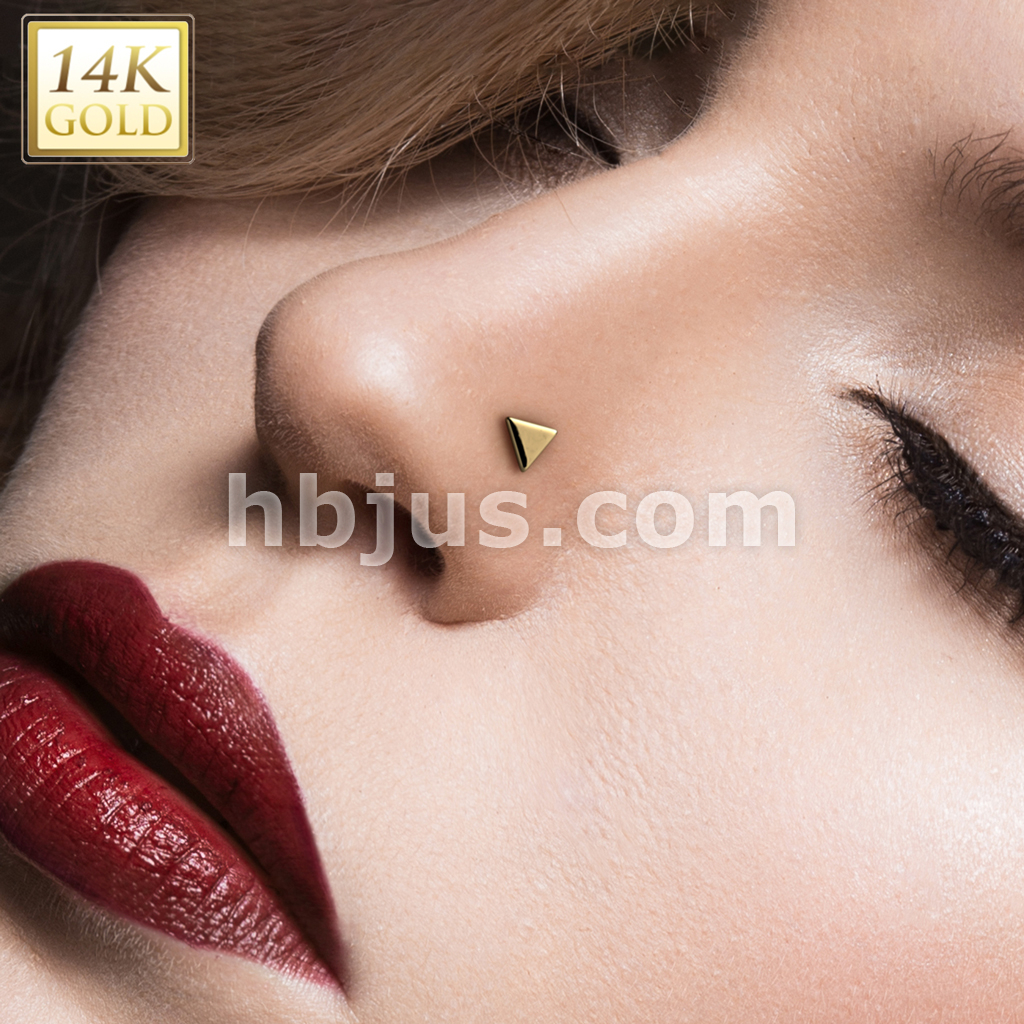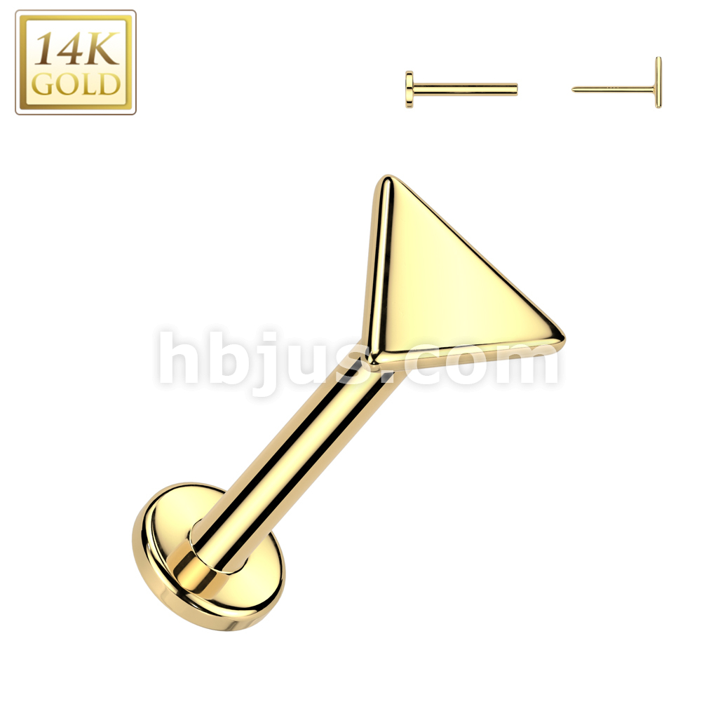14K Gold Threadless Push In 20ga Flat Back Stud With Flat Triangle Top For Nose, Ear and More
