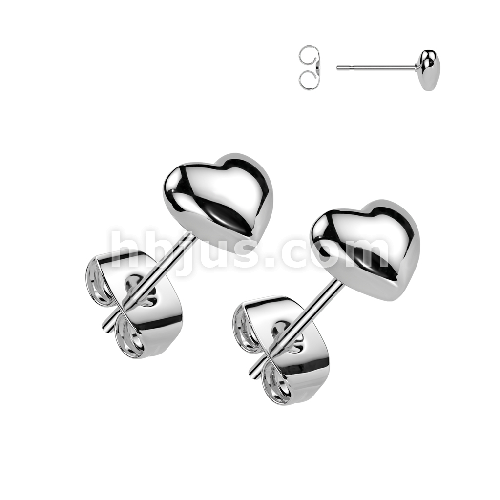 Pair of 316L Stainless Steel 3D Heart Shaped Earrings