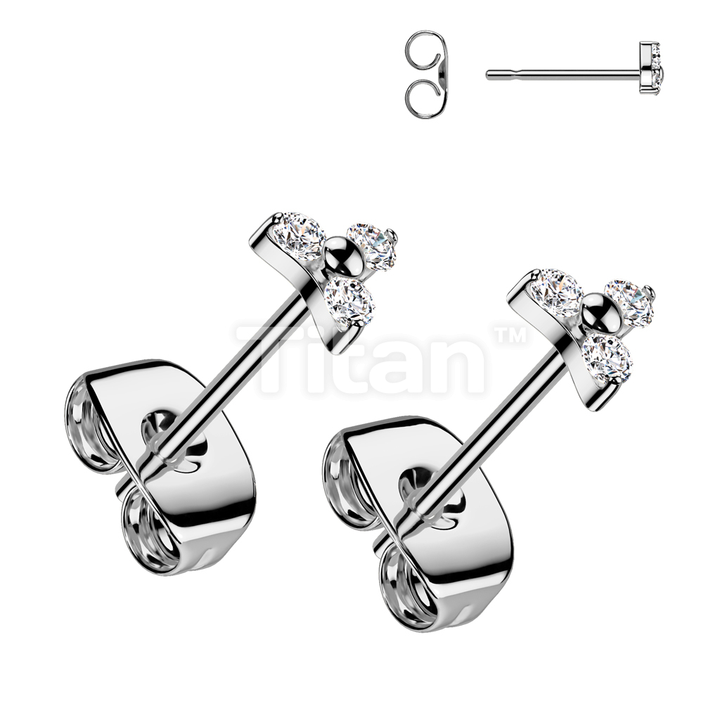 Pair of Implant Grade Titanium Prong Set Earrings With Trinity CZ