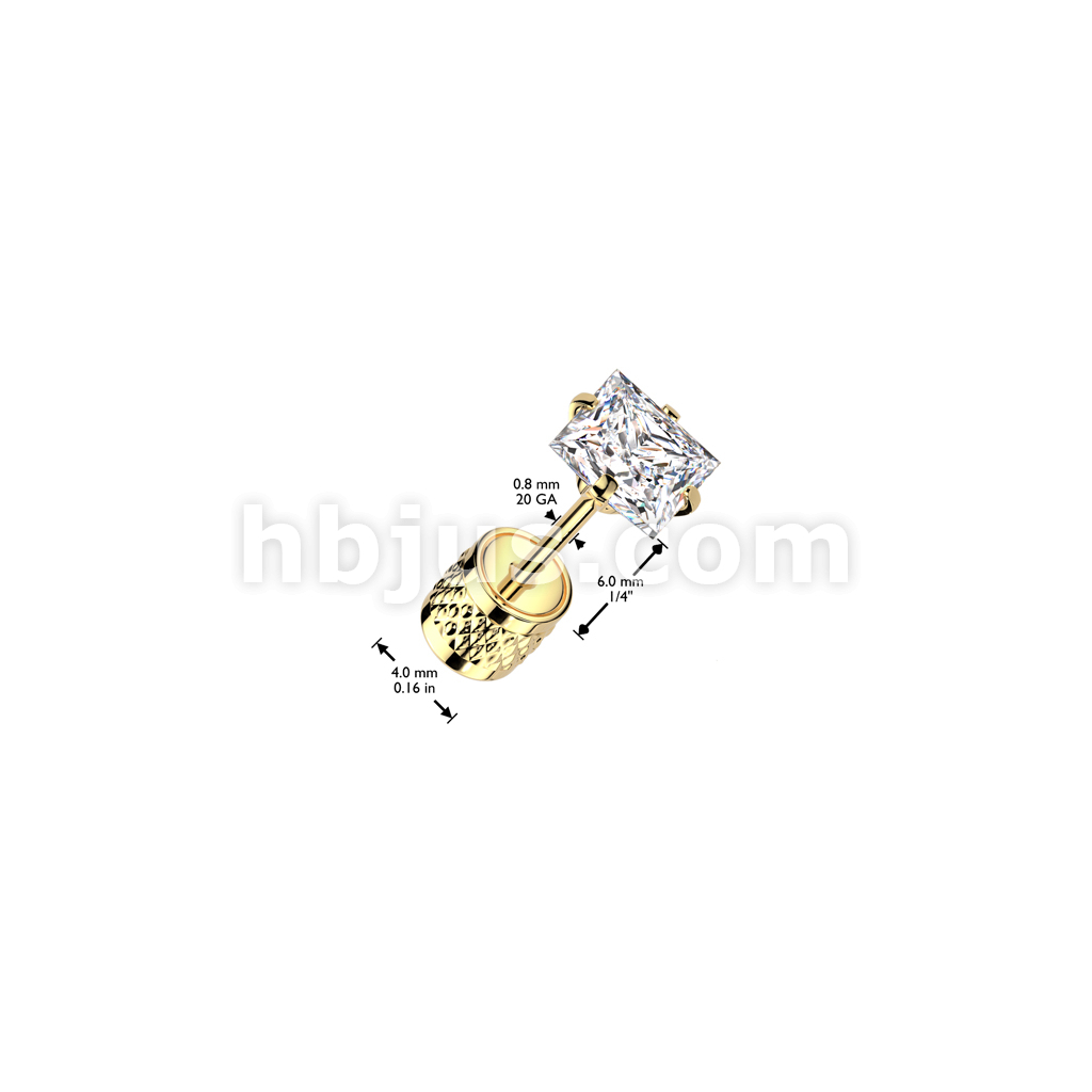 Pair of Square Prong Set Clear CZ Top 316L Surgical Steel Earrings With Cylinder Clip Backing