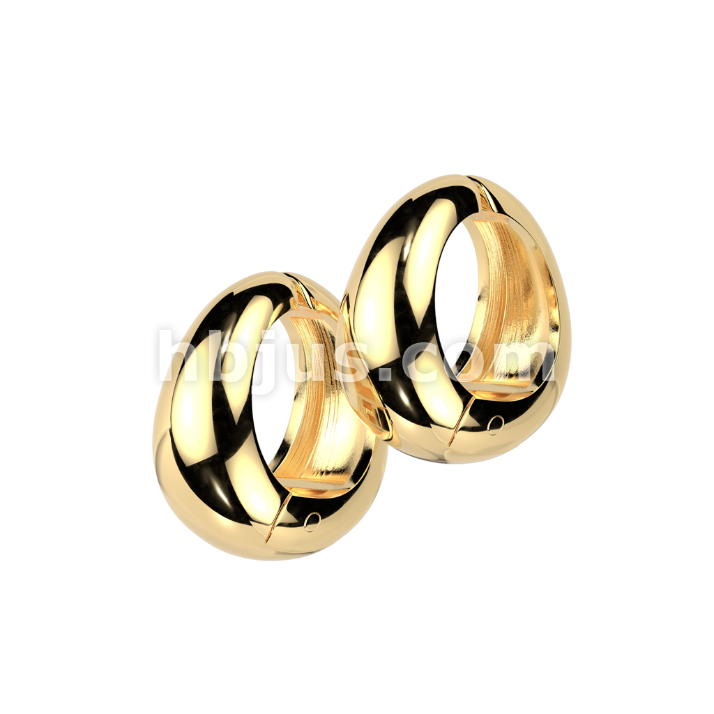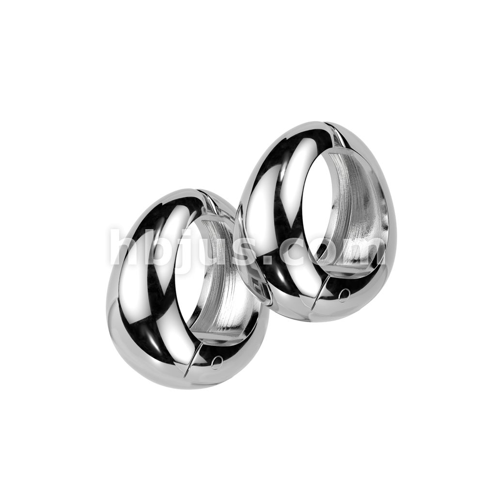 Pair of 316L Stainless Steel Wide Oval Non-Piercing Clip On Hoop Ear Cuff Earrings