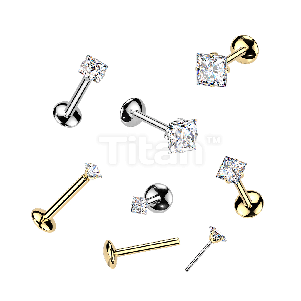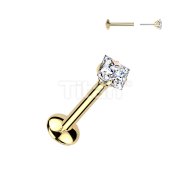 Titanium Threadless Push In Convex Base Labret With Square Moissanite Top