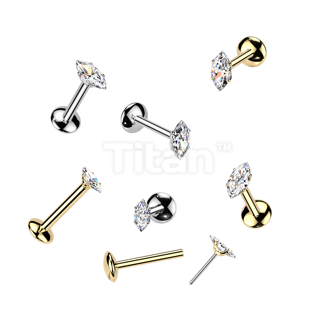 Titanium Threadless Push In Convex Base Labret With Marquise Moissanite Top