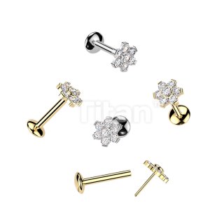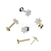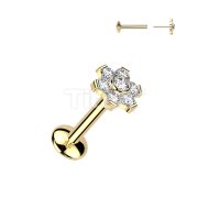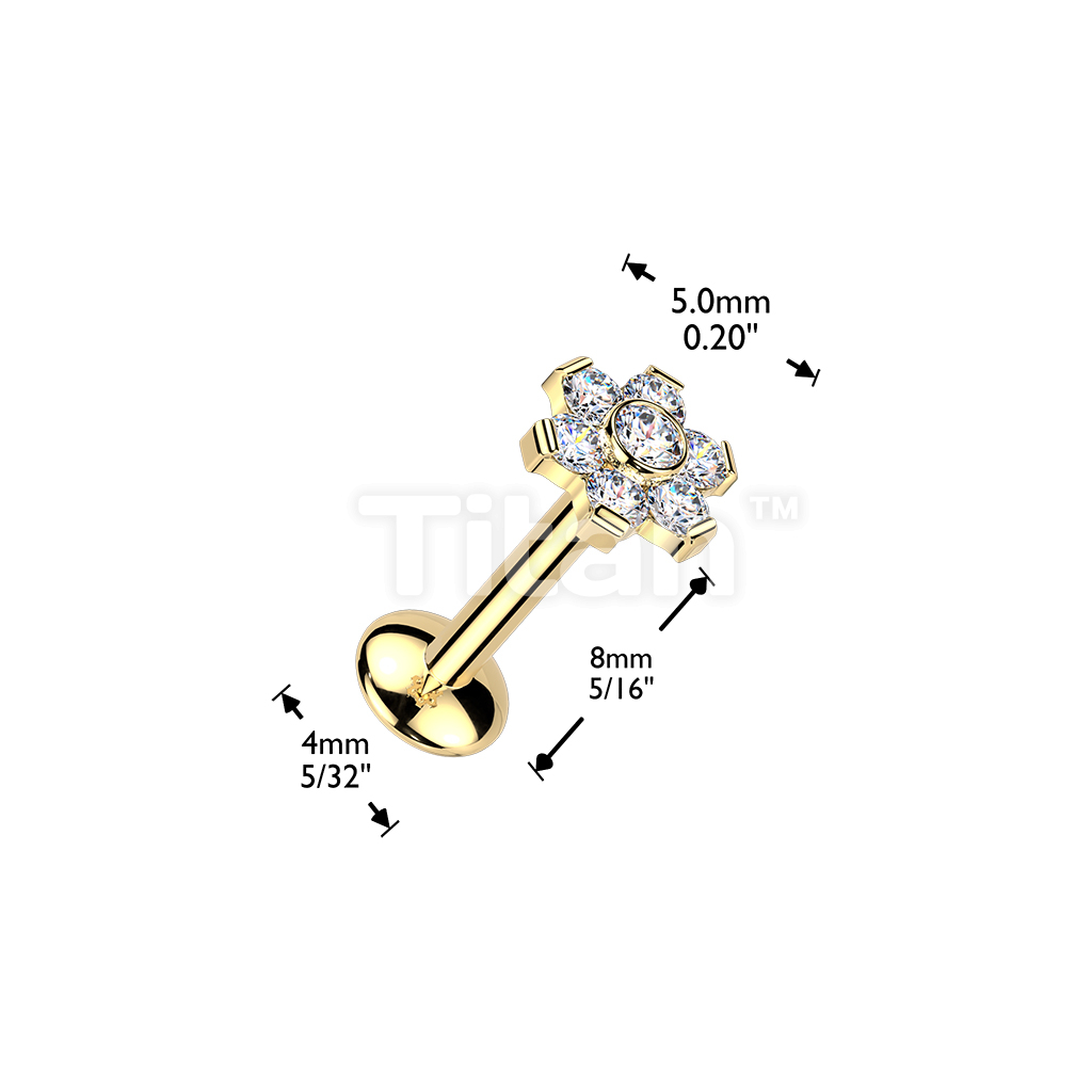 Titanium Threadless Push In Convex Base Labret With Flower Moissanite Top