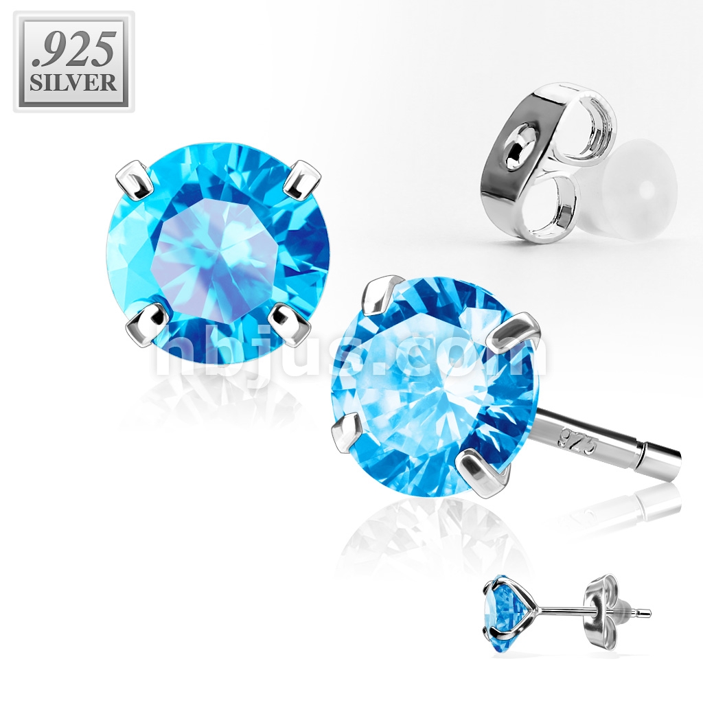 Pair of .925 Sterling Silver Martini Stud Earring W/Round CZ