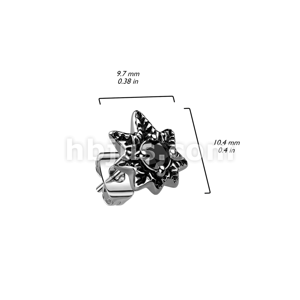 Pair of 316L Surgical Stainless Steel Black CZ Pot Leaf Stud Earring