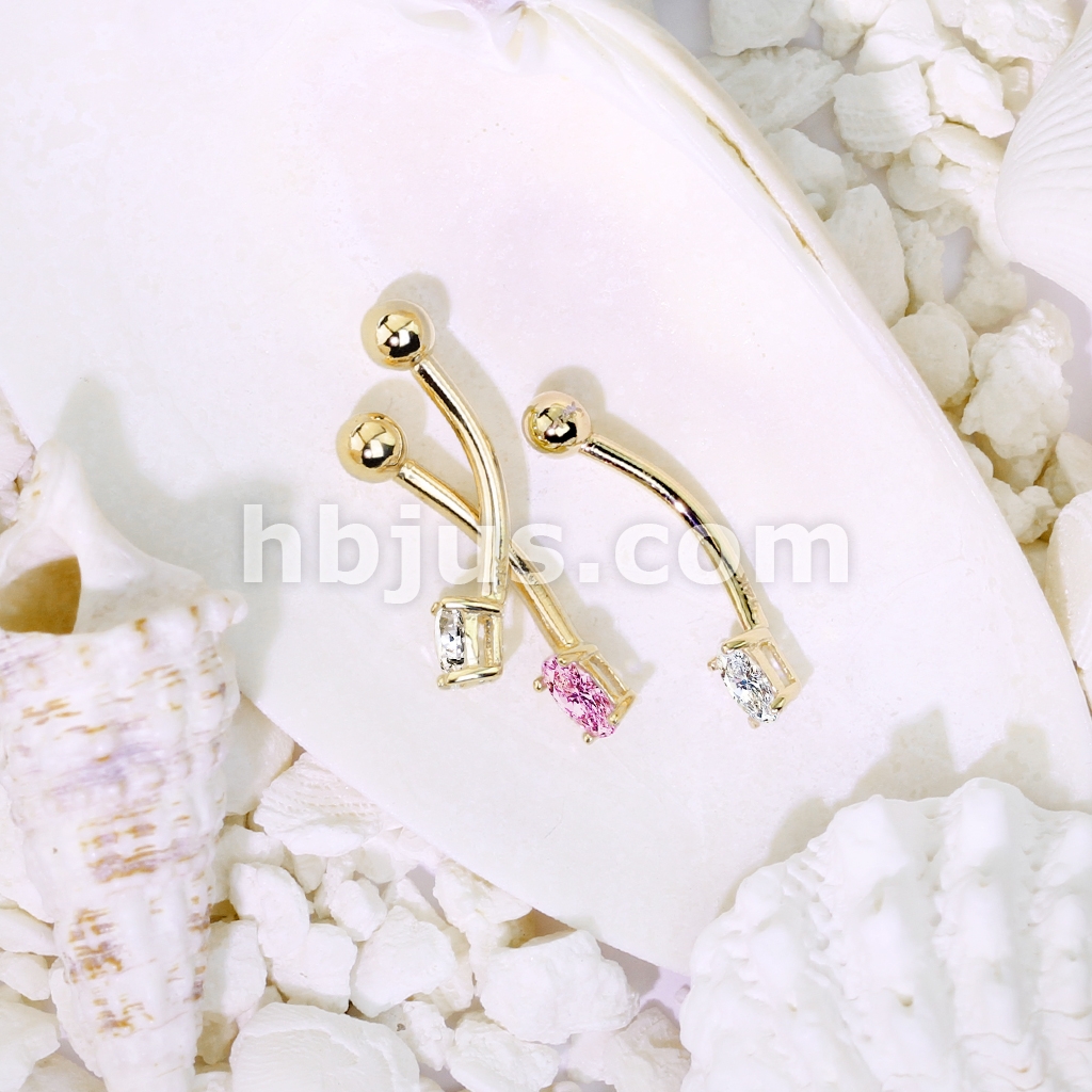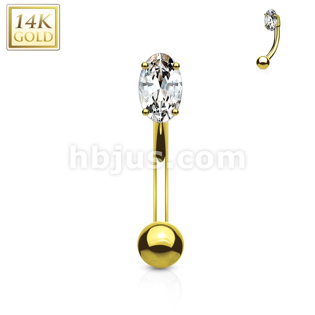 14K Solid Gold Eye Brow Curve with Oval Shape CZ