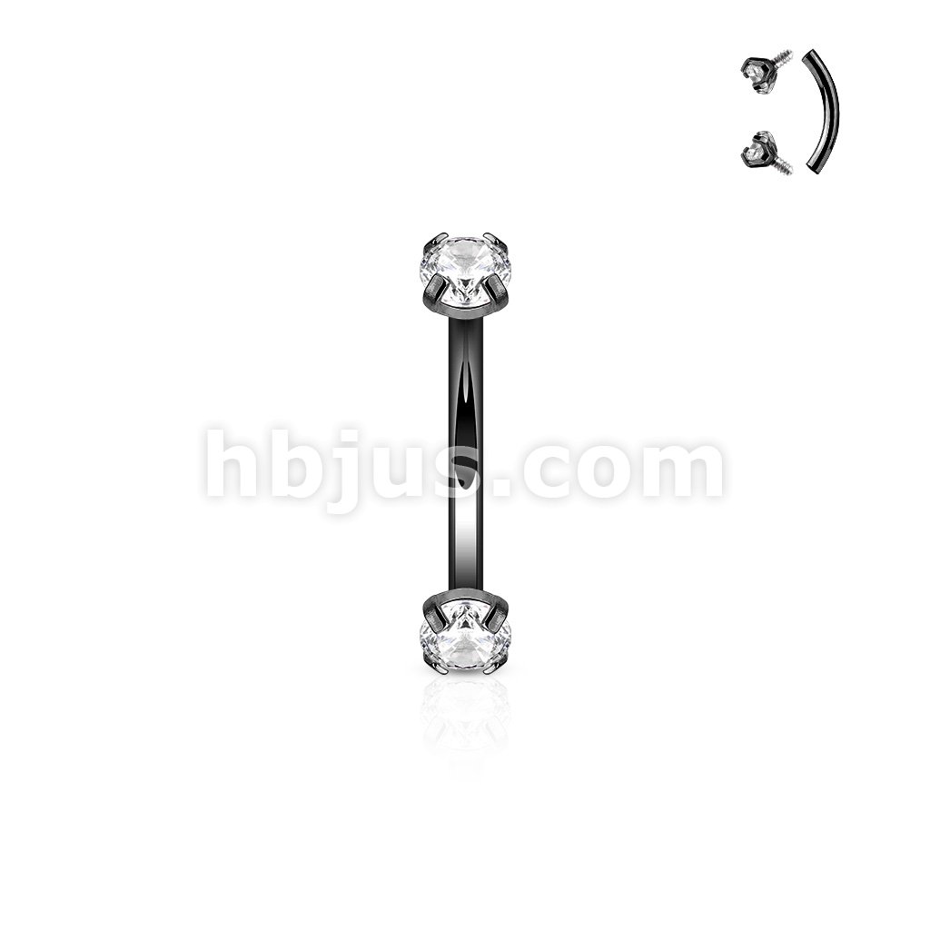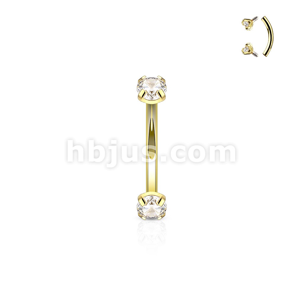 Plated Prong Set Clear CZ Internally Threaded 316L Surgical Steel Eyebrow Curve Ring