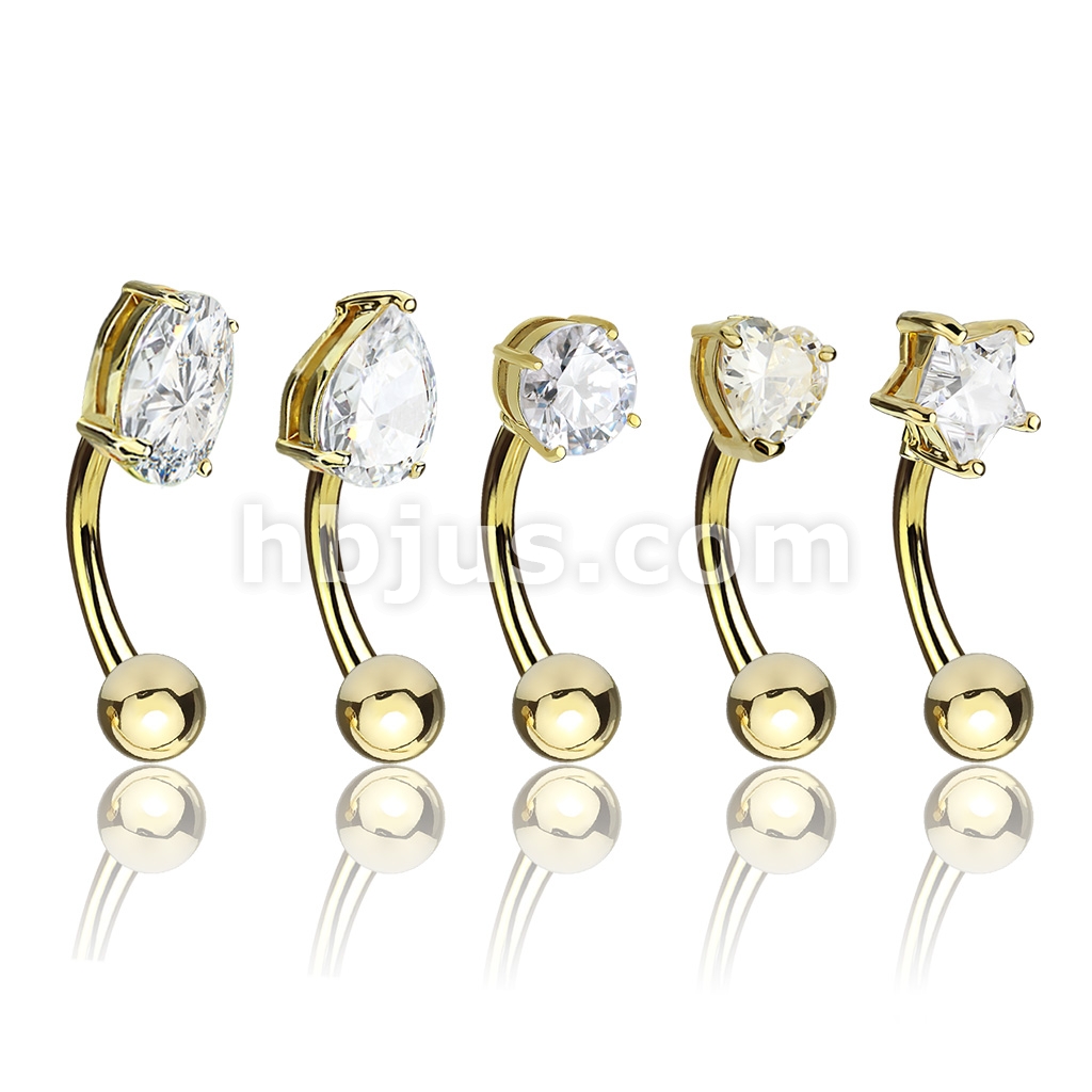 5 Pcs Value Pack Basic Shapes CZ Prong Set Top 316L Surgical Steel Eyebrow Rings/ Curved Barbells