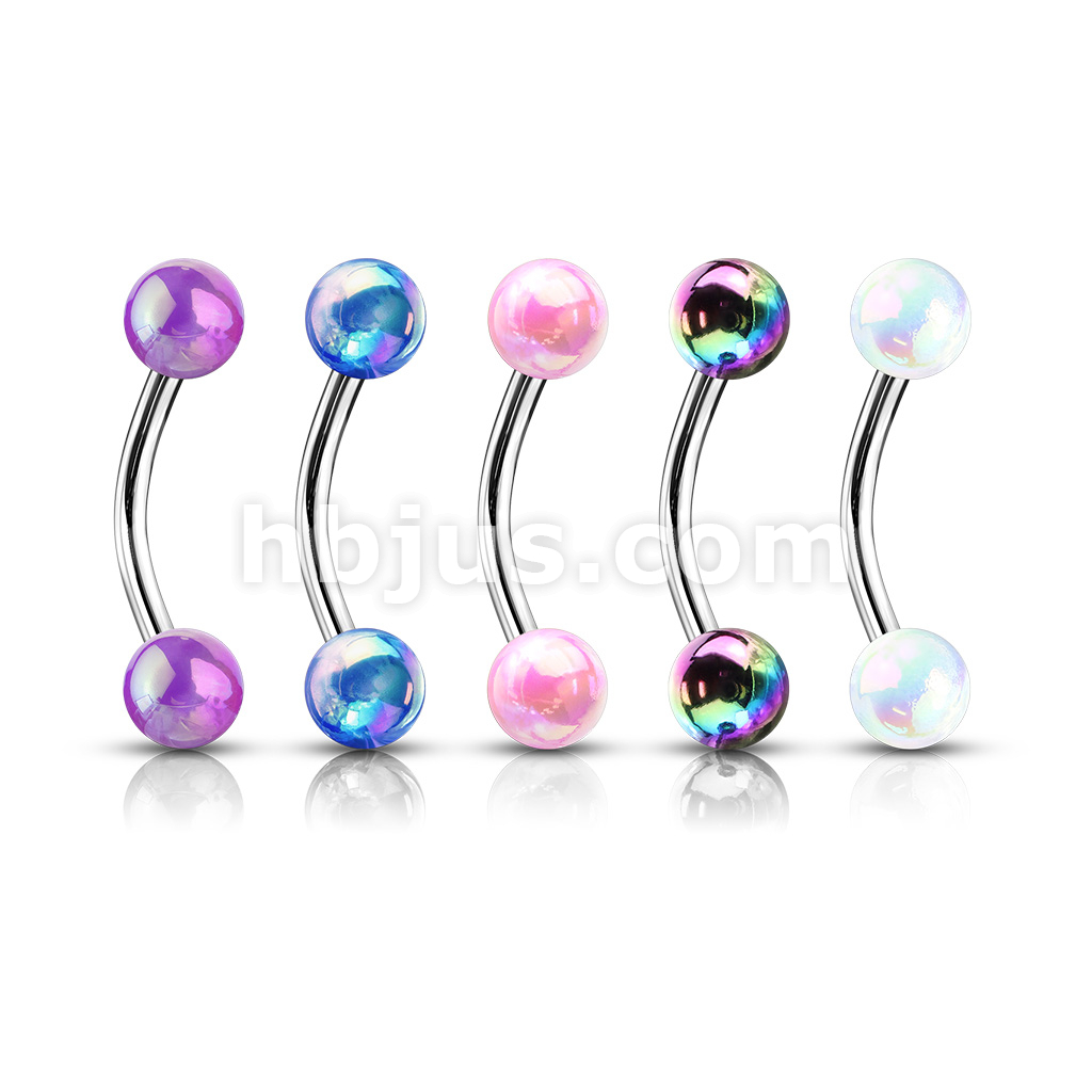 5 Pcs Value Pack Metallic AB Coating Balls 316L Surgical Steel Curved Barbells, Eyebrow Rings