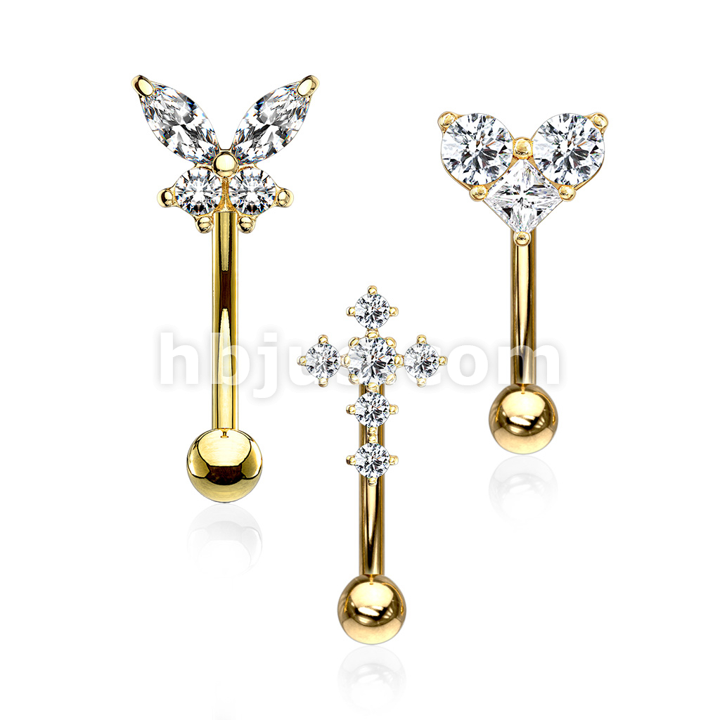 3 Pcs Pre Loaded Assorted 316L Surgical Steel Curved Barbells/ Eyebrow Rings Gem Box Package