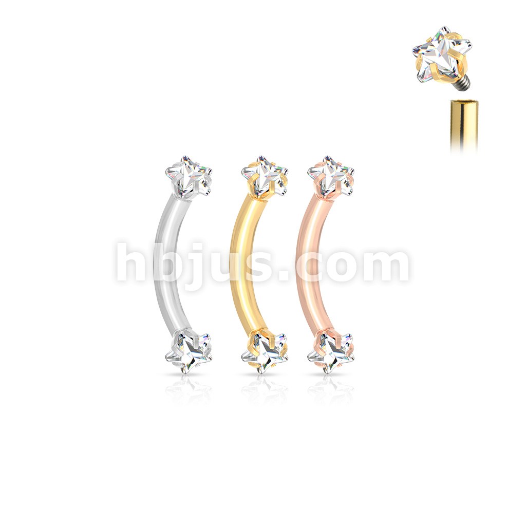 Prong Set Star CZ Ends Internally Threaded 316L Surgical Steel Curved Barbells, Eyebrow Rings