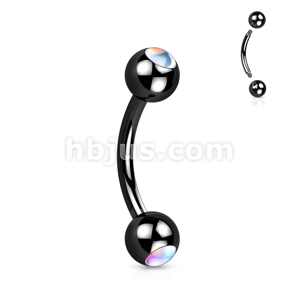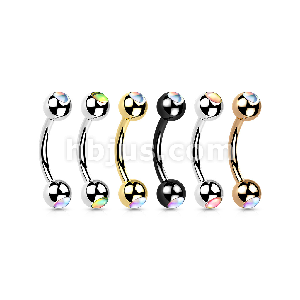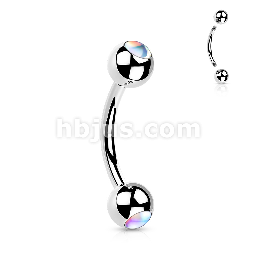 Double Iridescent Stone 316L Surgical Steel Curved Eyebrow Barbell