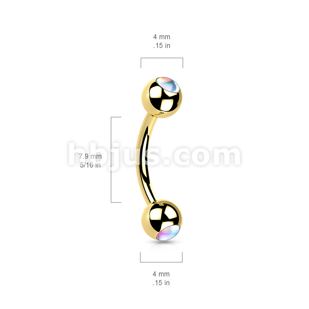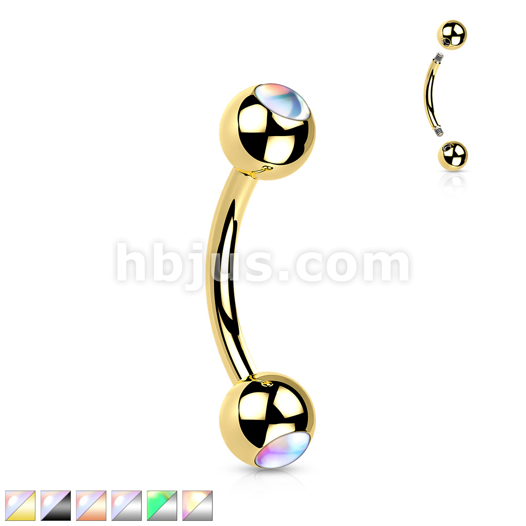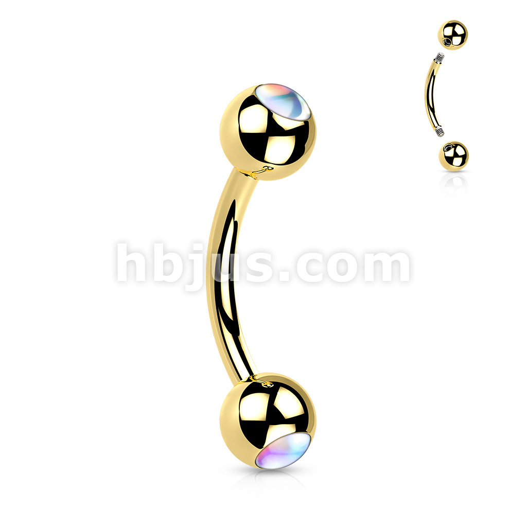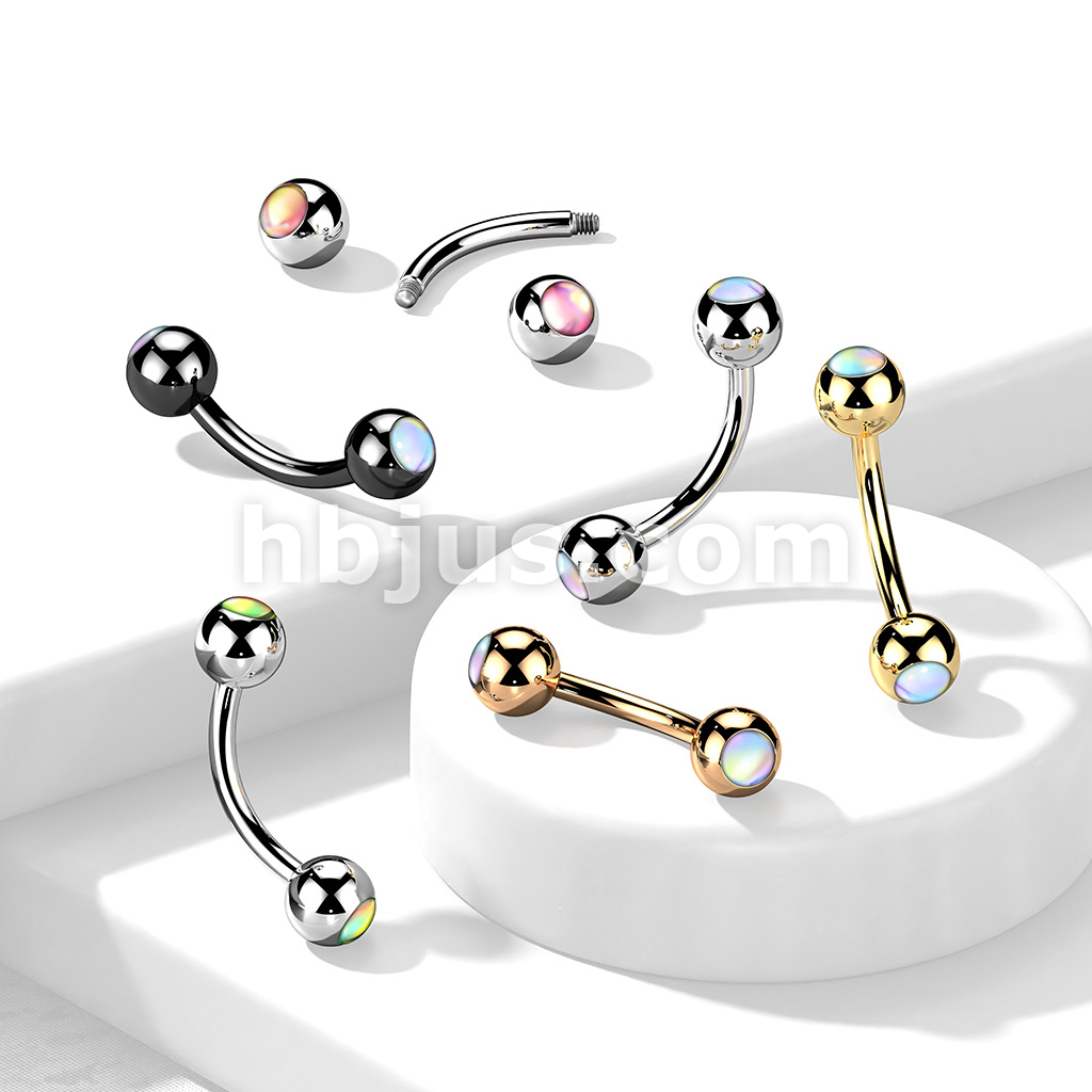Double Iridescent Stone 316L Surgical Steel Curved Eyebrow Barbell