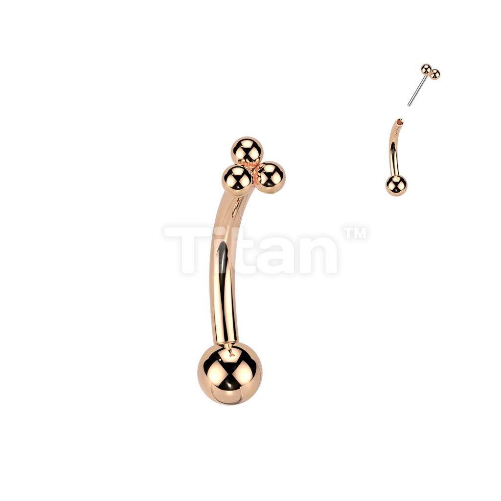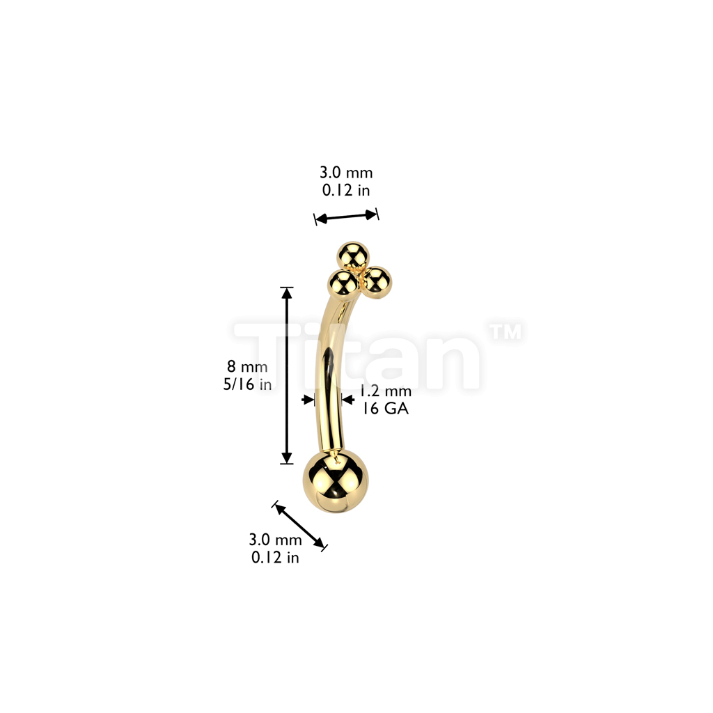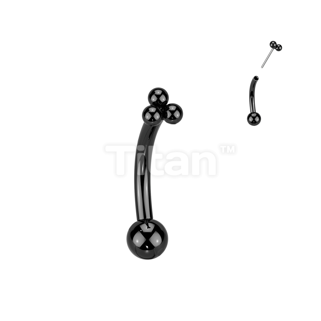 Implant Grade Titanium Threadless Push In Eyebrow Curved Barbell With Triangular Trinity Ball Cluster Top