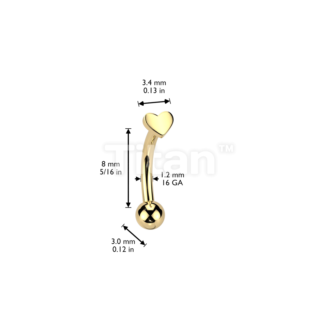 Implant Grade Titanium Threadless Push In Curved Eyebrow Barbell With Heart Top