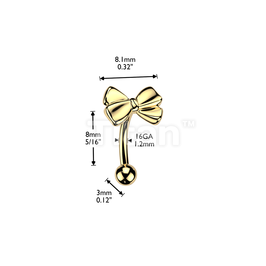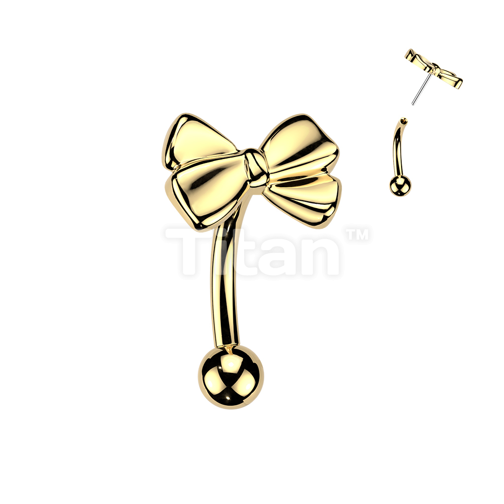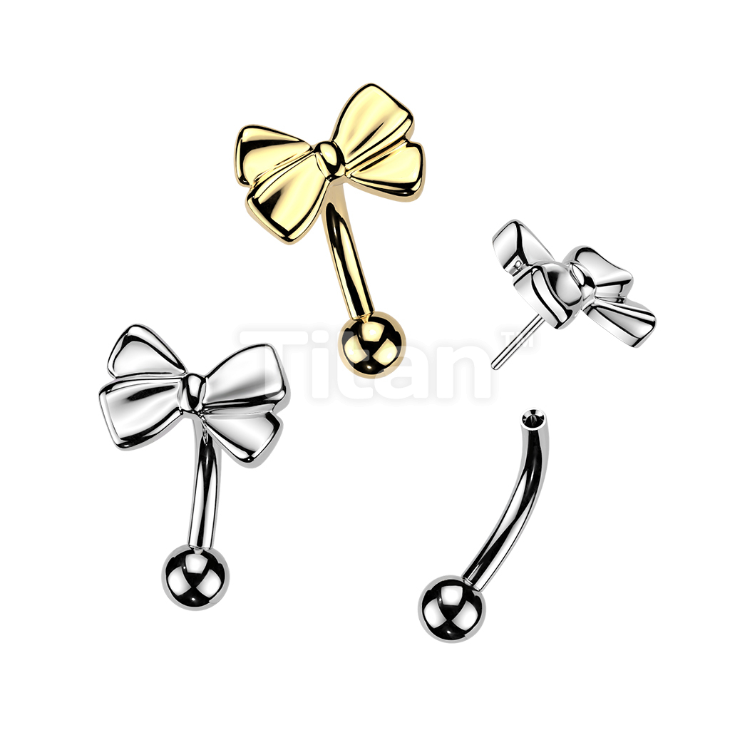 Titanium Threadless Push In Eyebrow Curved Barbell With Ribbon Top