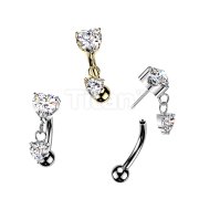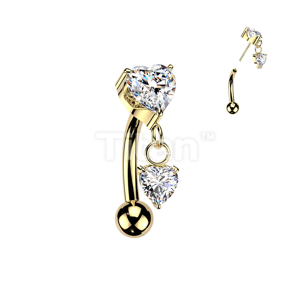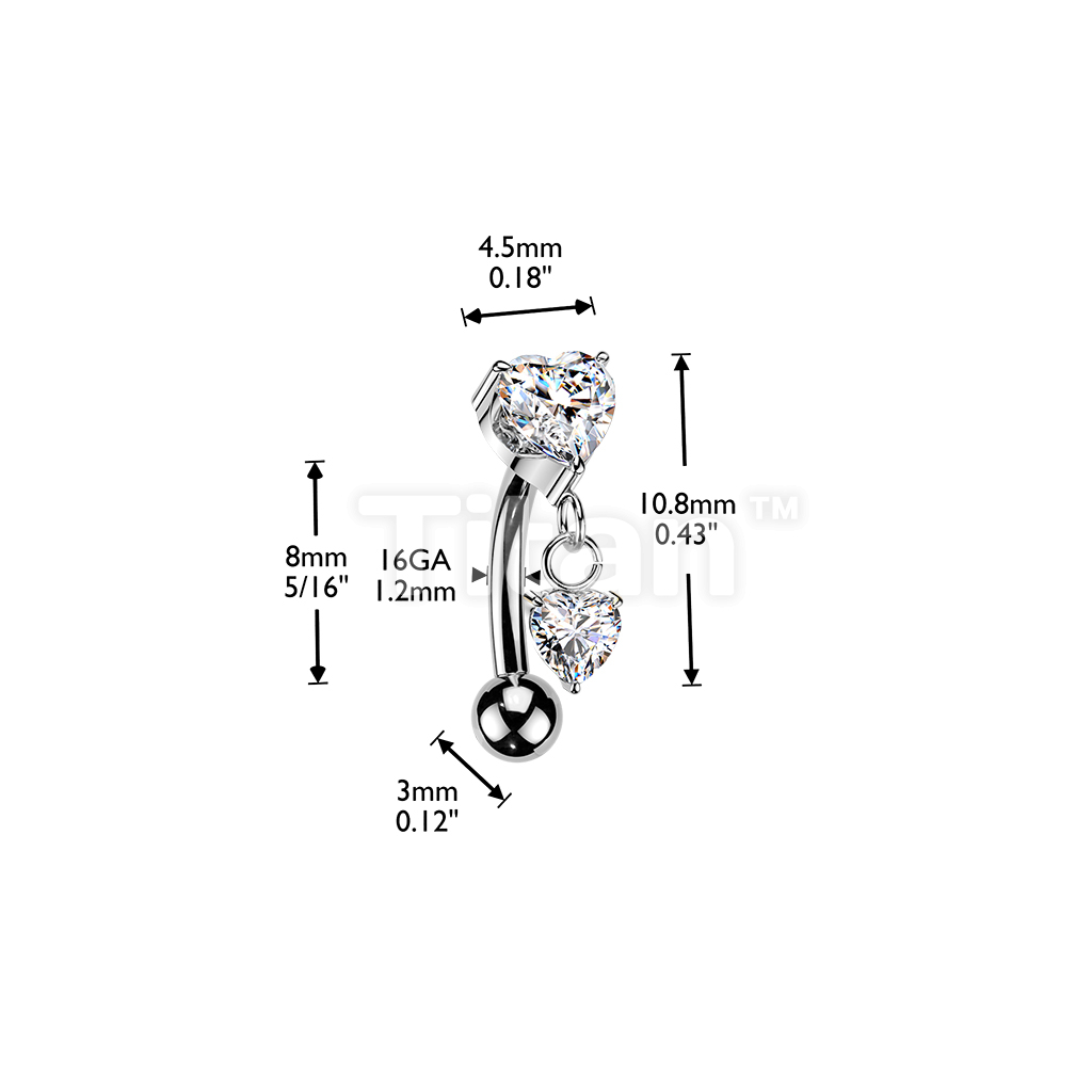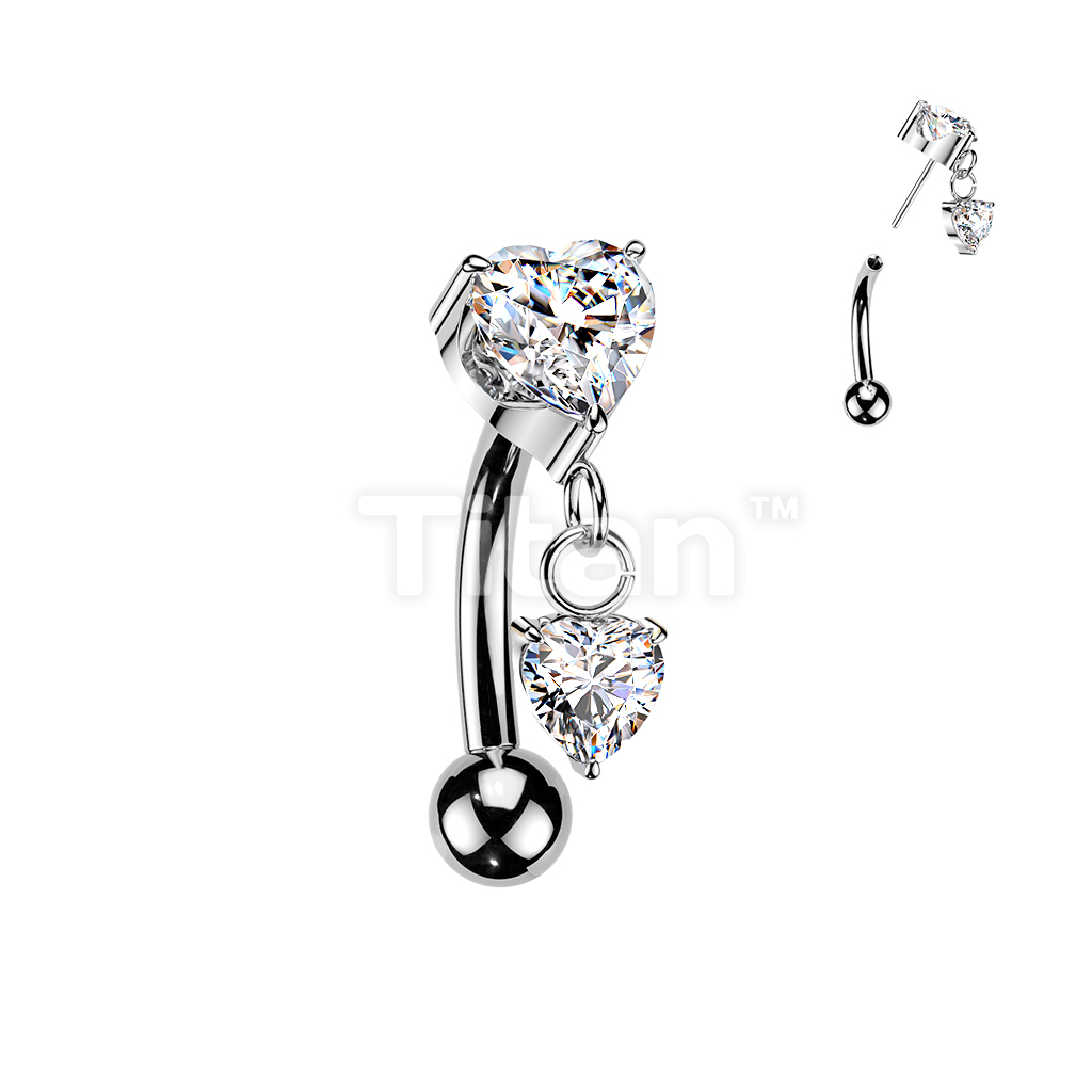Titanium Threadless Push In Eyebrow Curved Barbell With Prong Set Heart CZ Top and Heart CZ Dangle