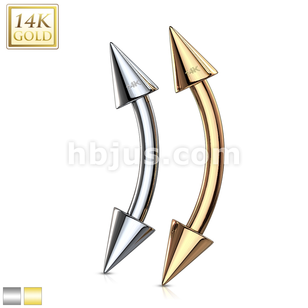 Spike End Eyebrow Curve Ring 14 Karat Solid Gold