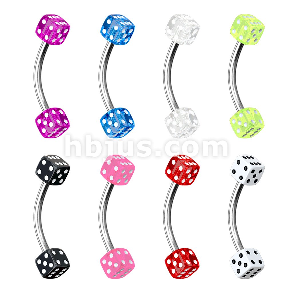 316L S.Steel 16G Eyebrow w/ Small Acrylic Dices 200pc Pack (25pcs x 8 colors)