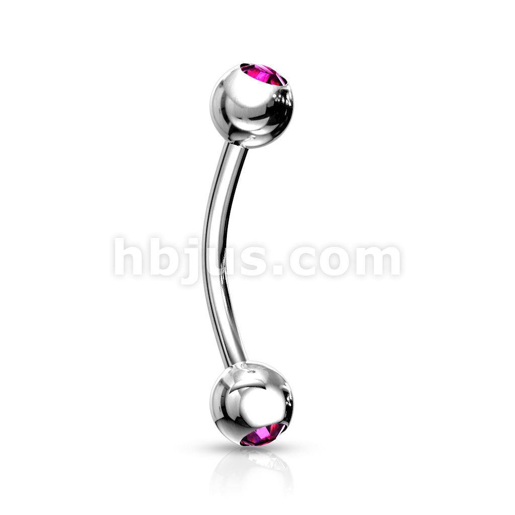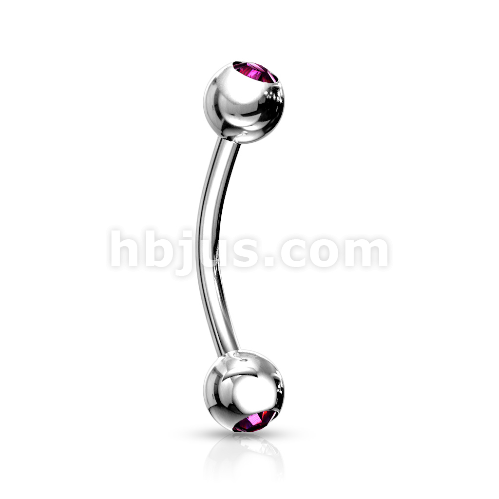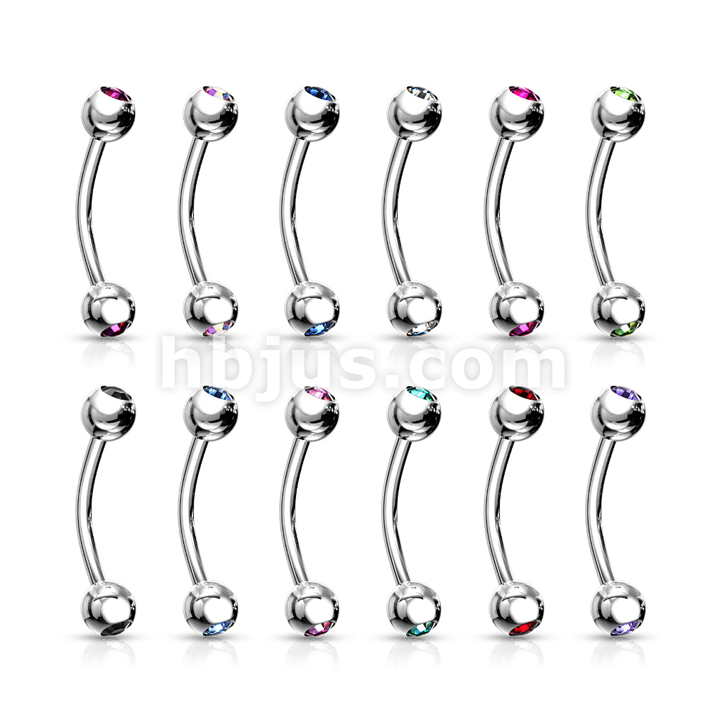 Press Fit Gem Ball On Both Side 316L Surgical Steel Curved Barbell