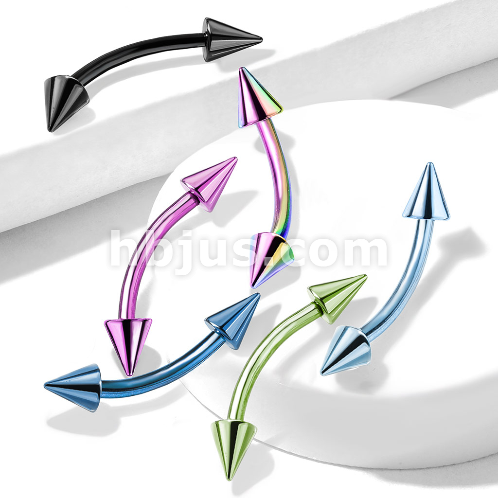 Spikes Titanium IP Over 316L Surgical Stainless Steel Curved Barbell