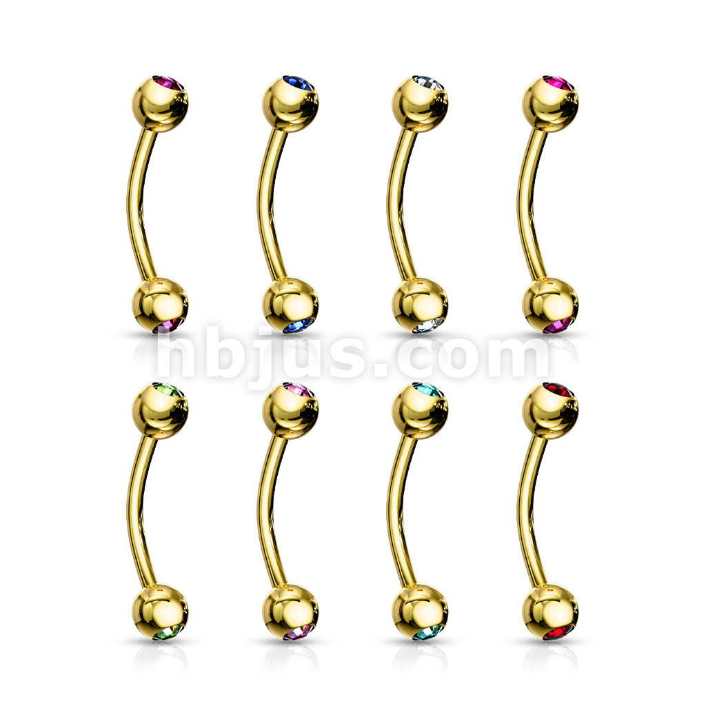 80pc Gold Plated Over 316L Surgical Steel Double Jeweled Eyebrow Rings Bulk Pack (10 pcs x 8 Colors)