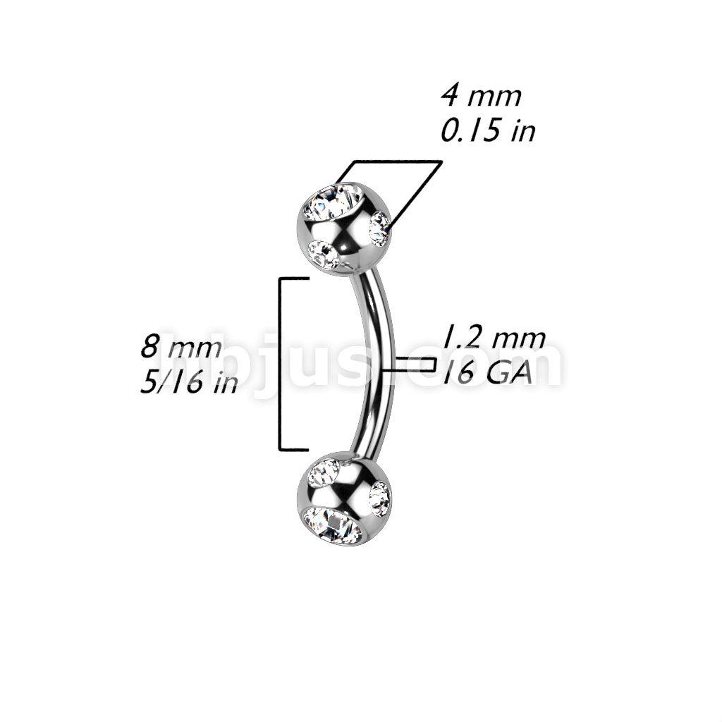 Multi Gemed 4mm Balls 316L Surgical Steel Eyebrow Curve