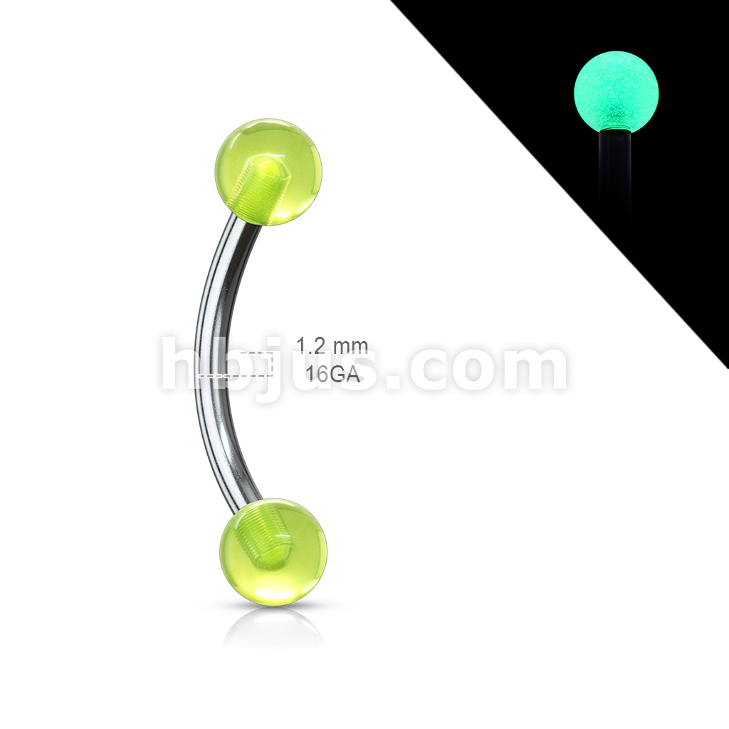 Acrylic Glow in the Dark Balls 16 GA 316L Surgical Stainless Steel Eyebrow Ring