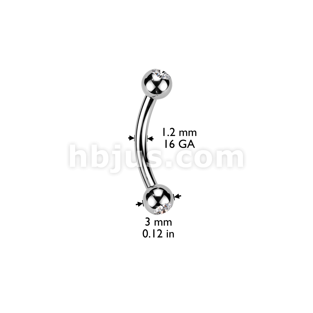 Press Fit Jewel Set Balls Internally Threaded Curve/Eyebrow Barbells
