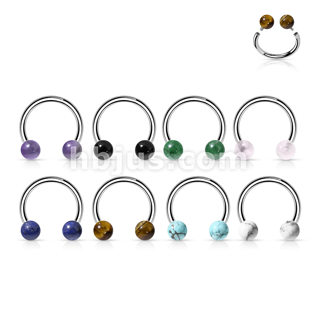 Semi Precious Stone Internally Threaded 316L Surgical Steel Horseshoes