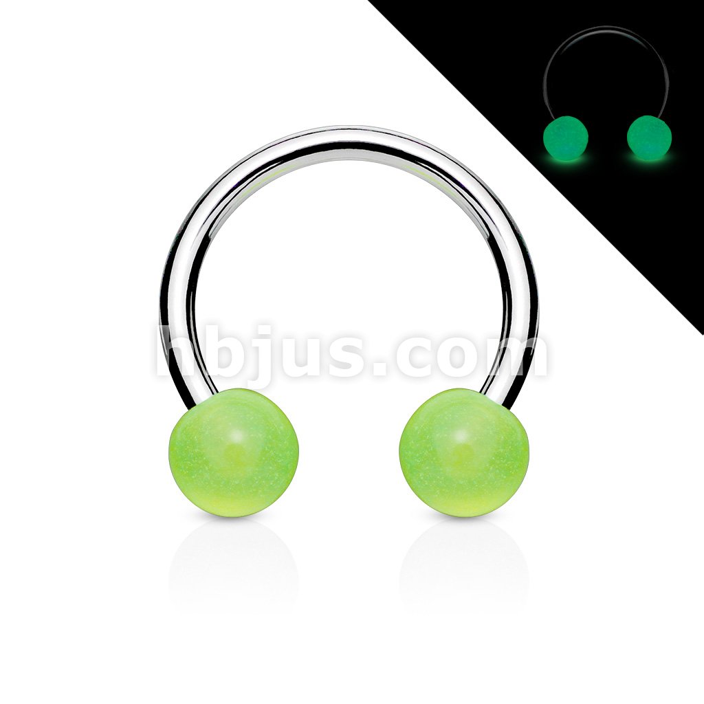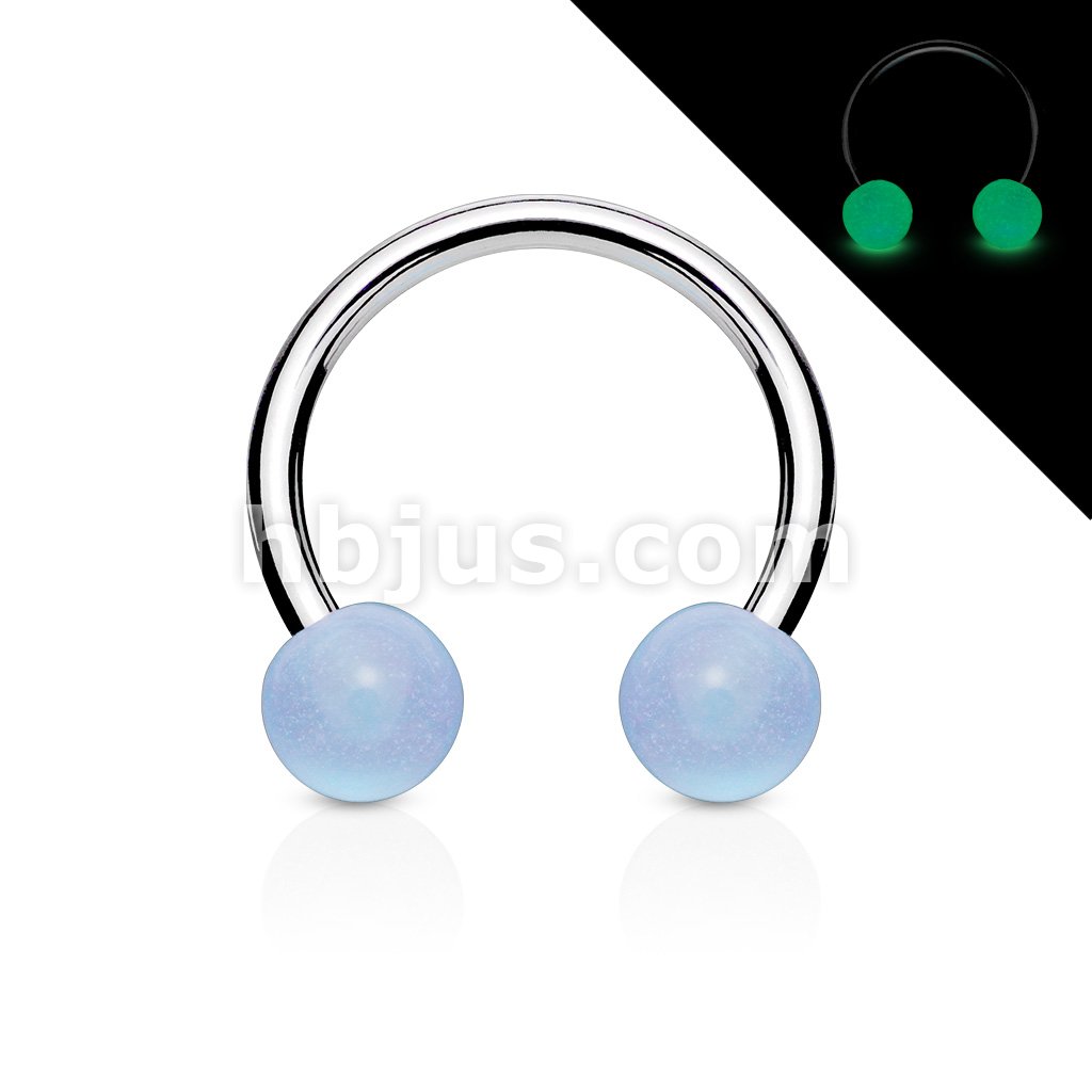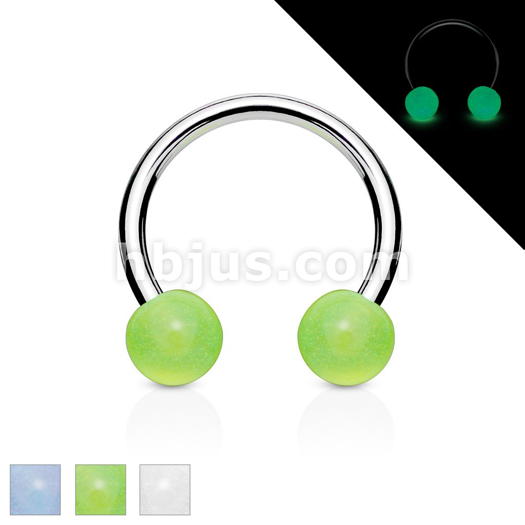 10,12,14ga 316L Surgical Steel Circular Barbells with Glow in the Dark Balls.