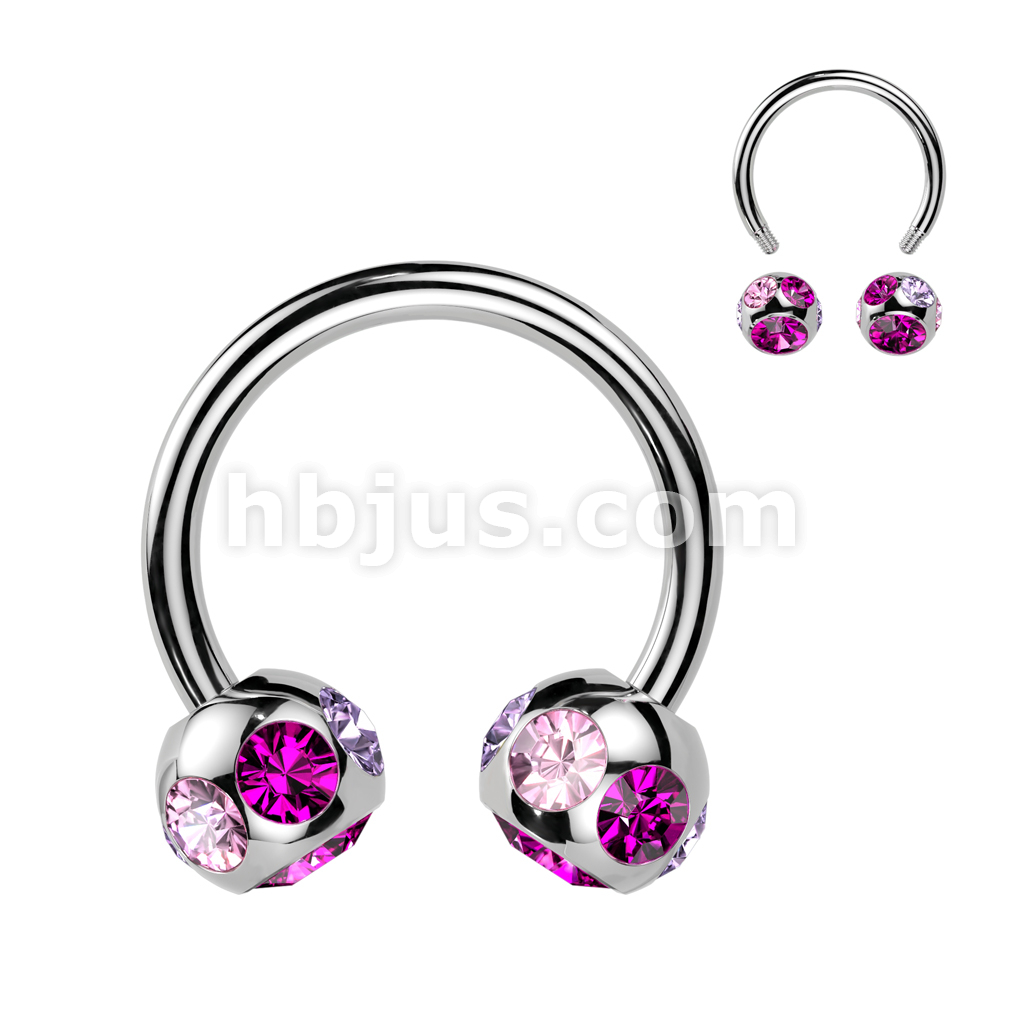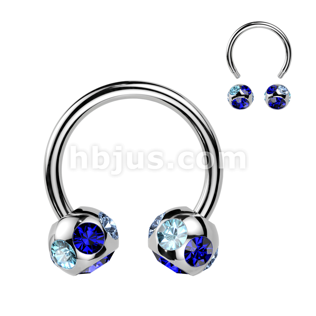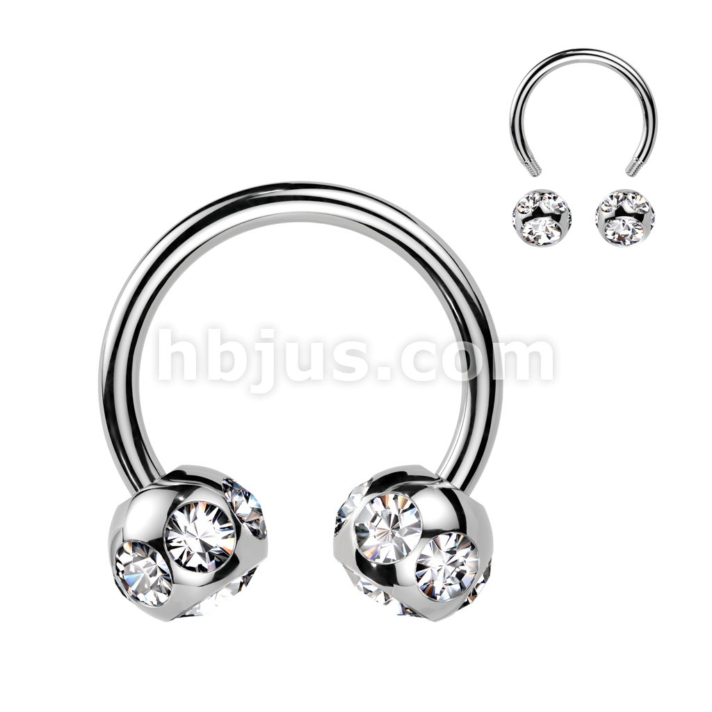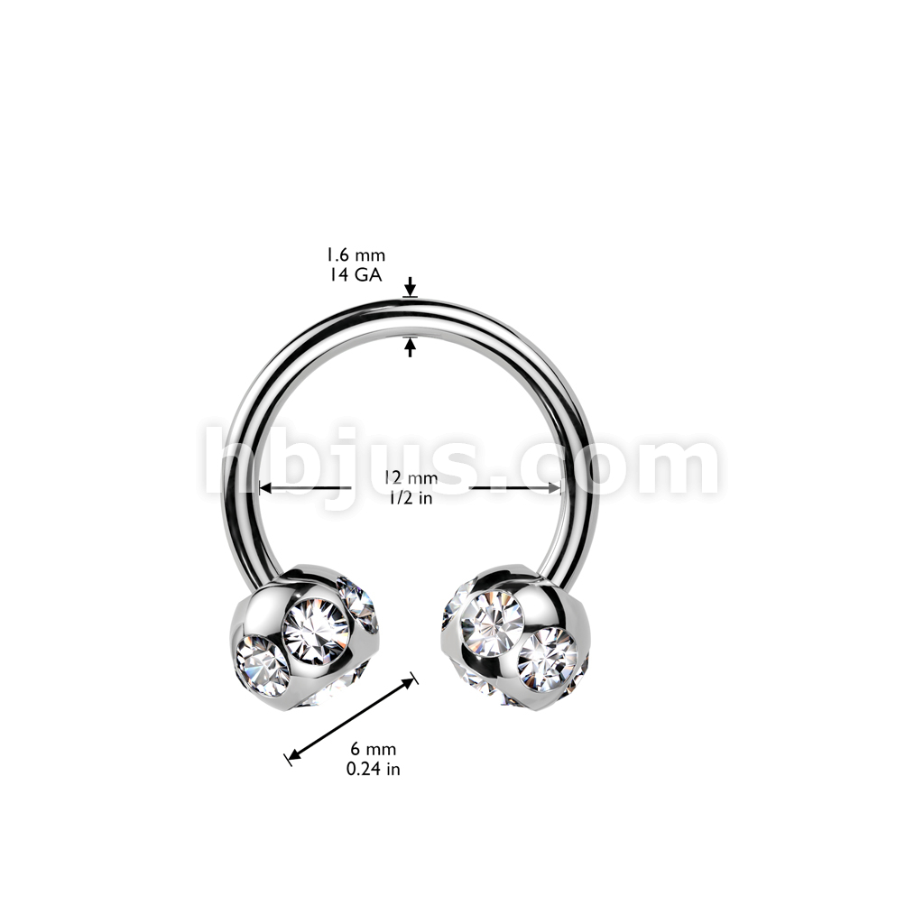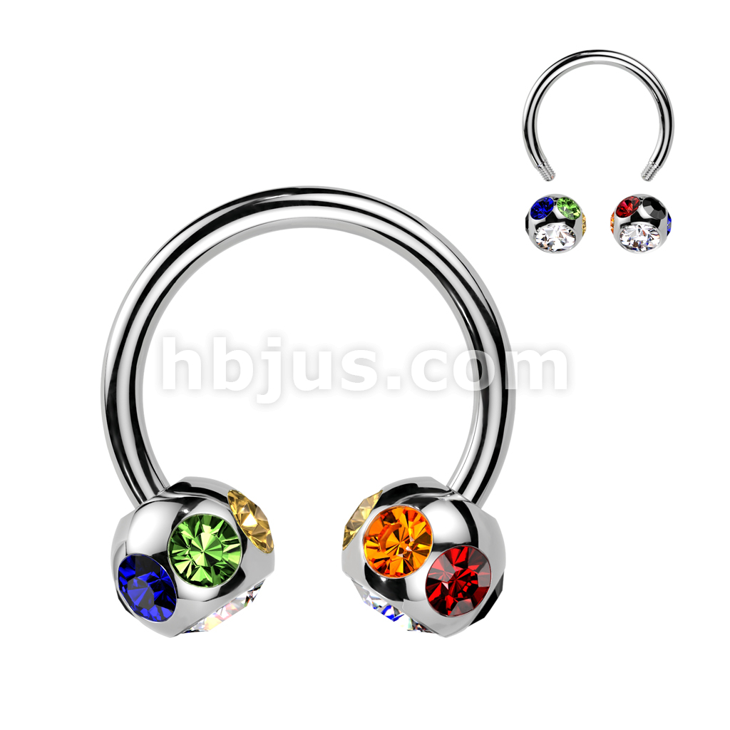7-Gem Paved 6mm Balls 316L Surgical Steel Circular/Horseshoe Barbells