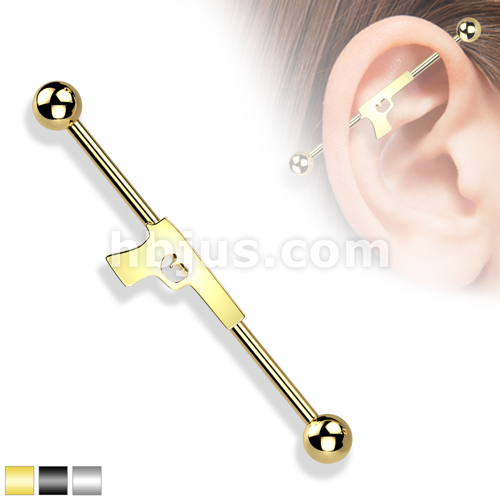 Hand Gun Industrial Barbell 316L Surgical Steel