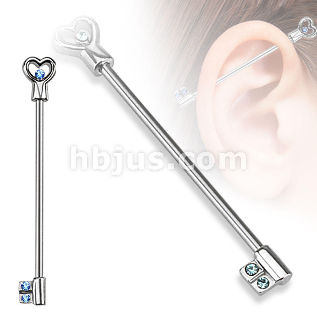 316L Surgical Steel Heart Key with CZs Industrial Barbell